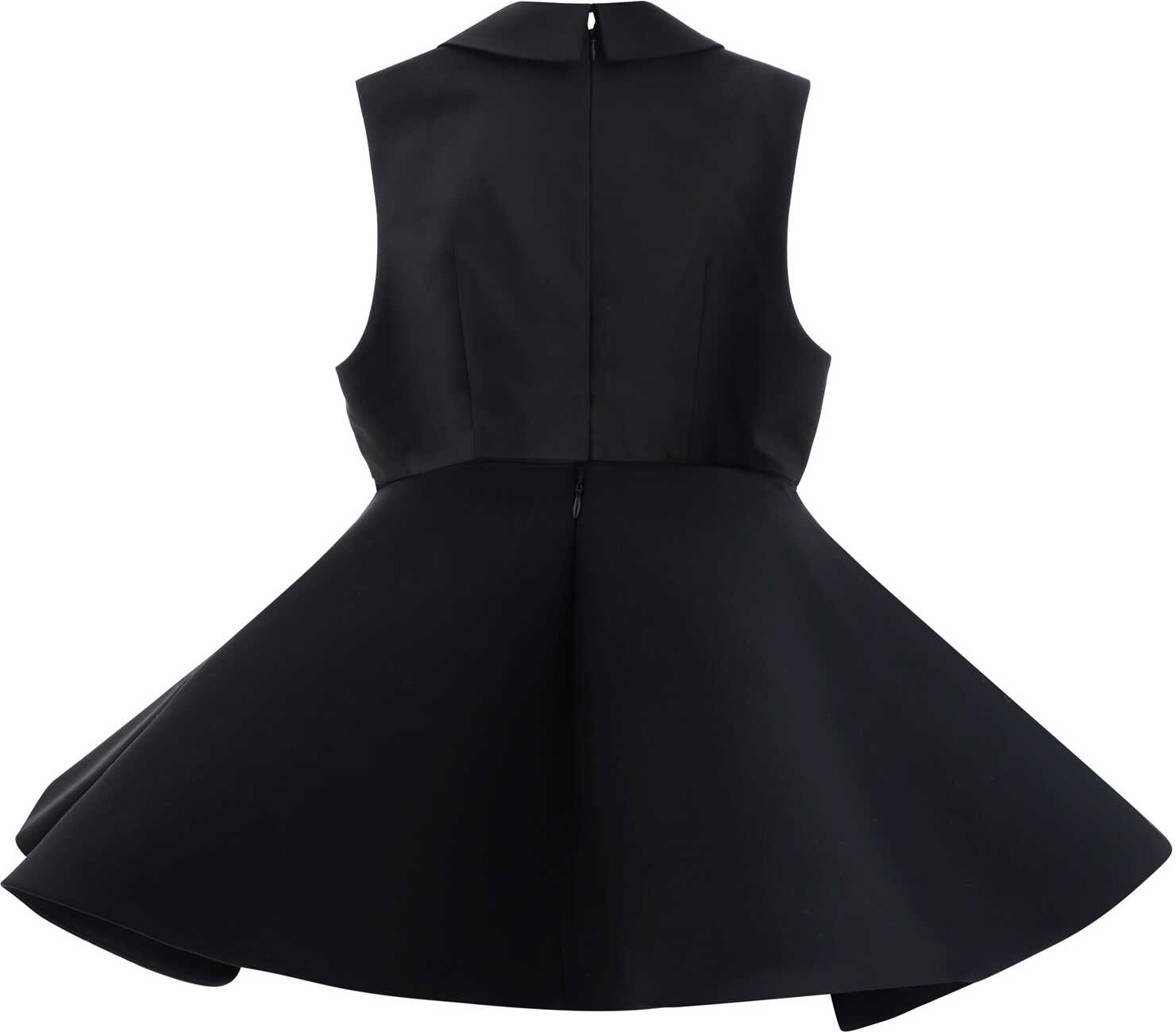 Virgin Wool Shoulder Top by Jacquemus, shrugless design, V-neck front, classic collar, flared peplum, back zipper closure, monochrome pattern, close fit.