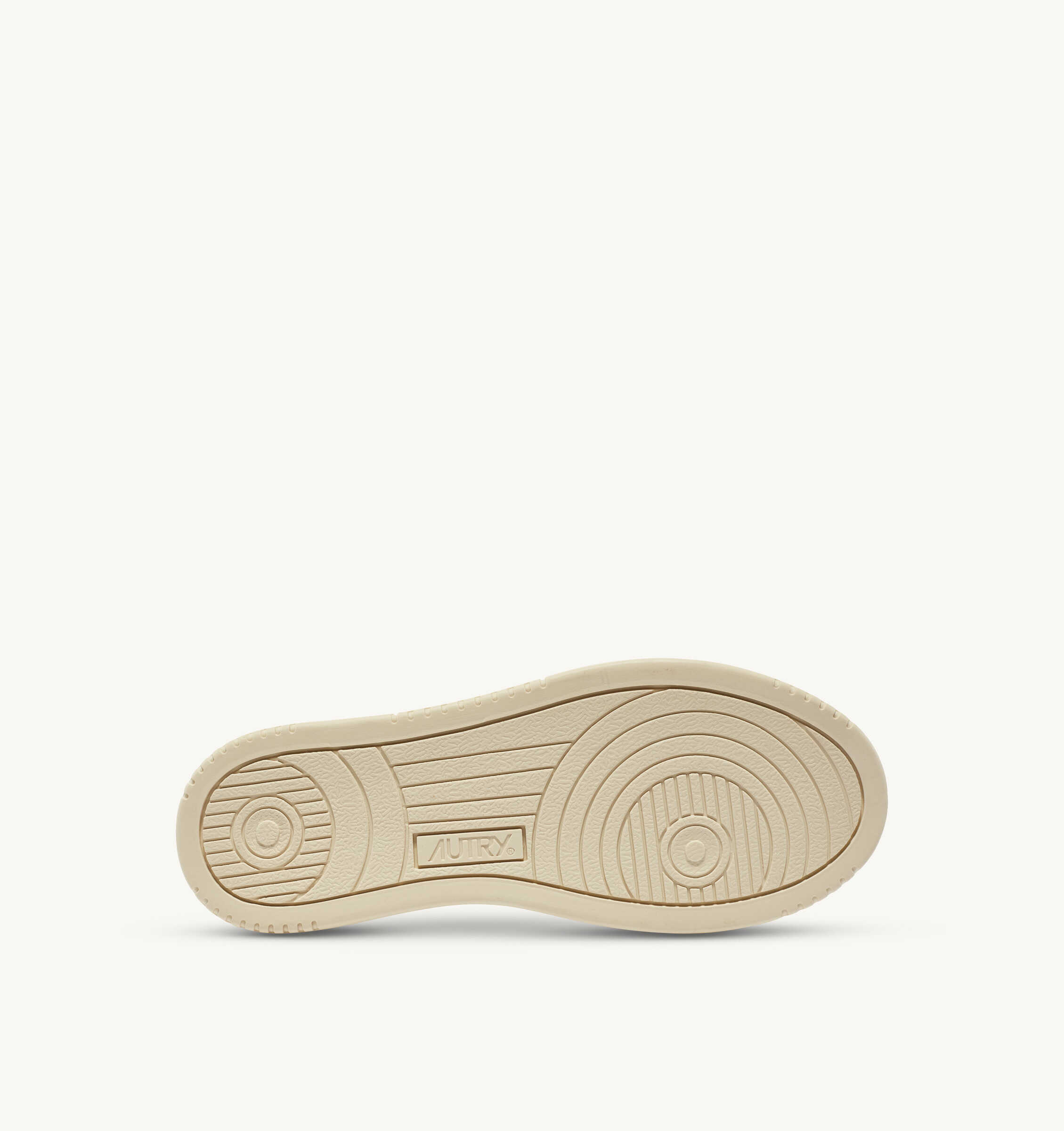 `Leather AUTRY sneakers with suede inserts, side logo, green mustache on the back, rubber sole.`