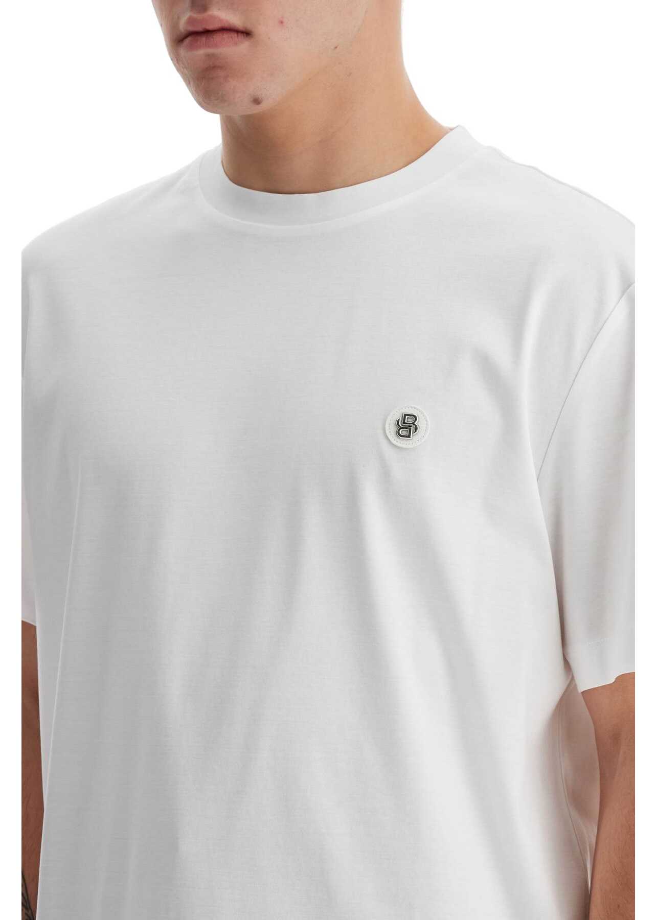 This BOSS crew neck t-shirt is made of pure cotton jersey and features a double monogram patch in leather and metal applied on the chest. It is finished with side slits and has a regular fit. The model is 182 cm tall and wears size M.