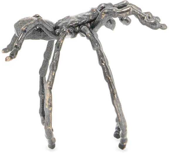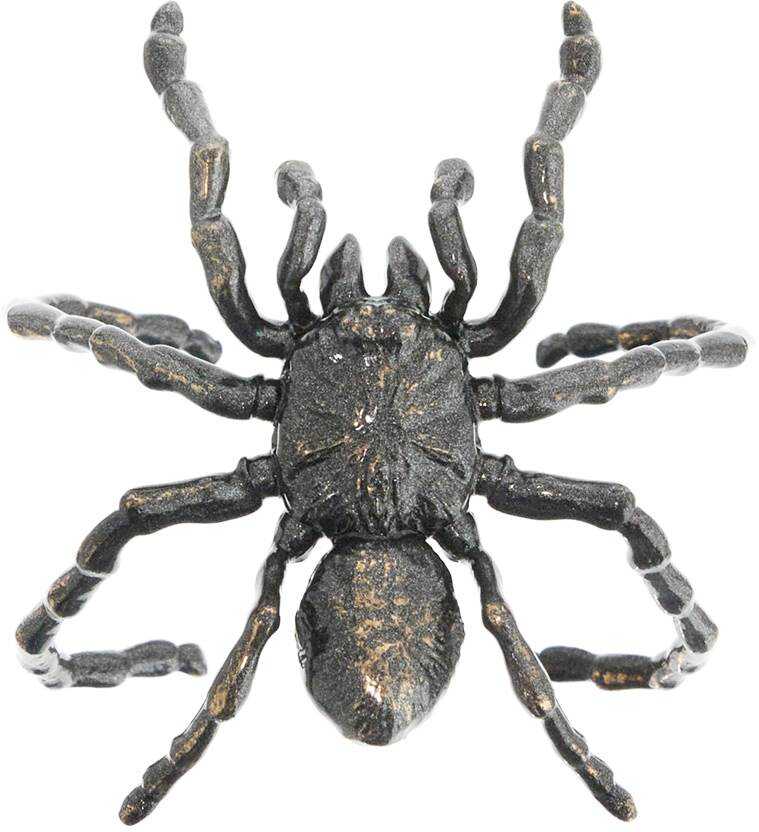This Y-Project rigid bracelet is made of antiqued brass with a rutenium finish, featuring a sculptural spider design. The item in the photo is one size fits all.