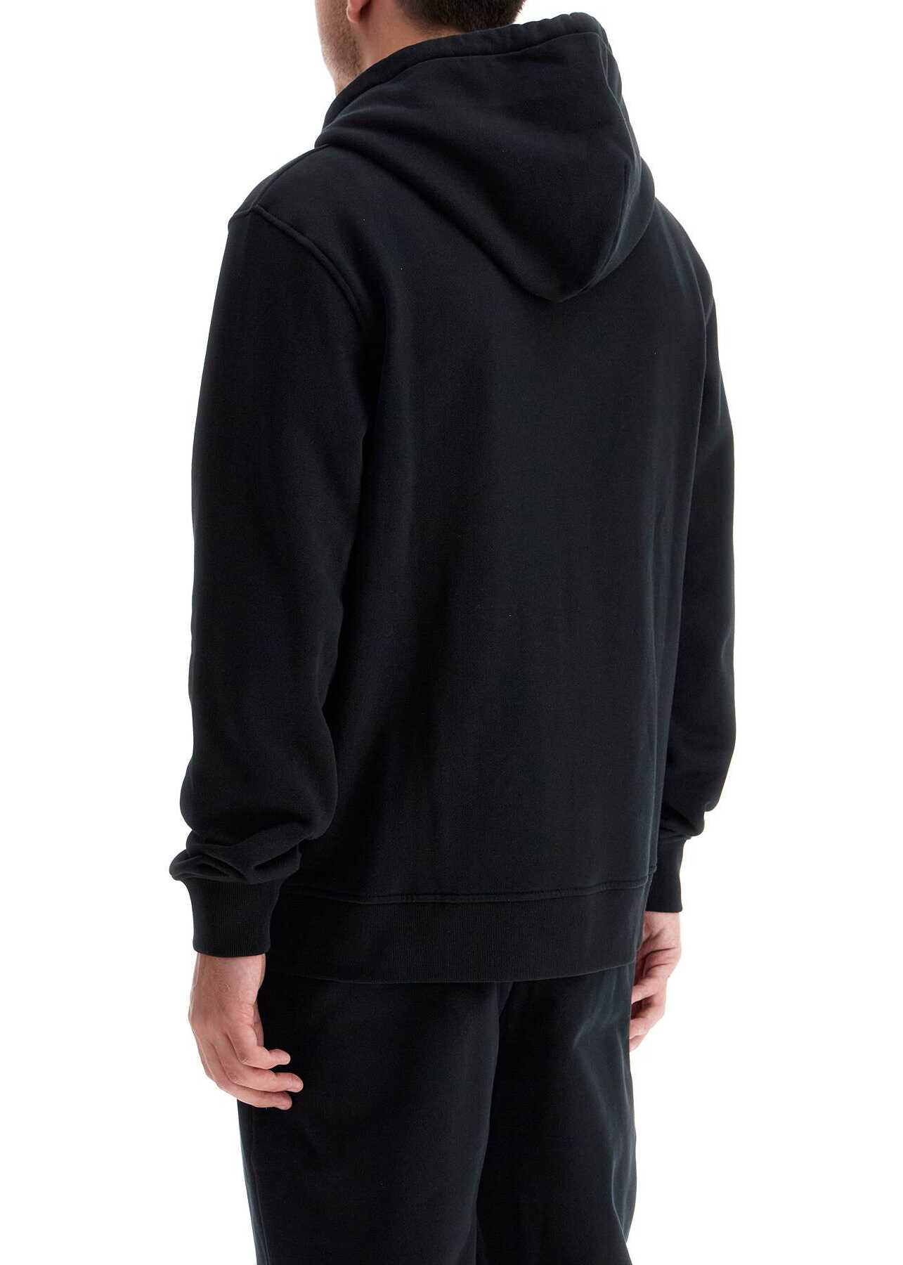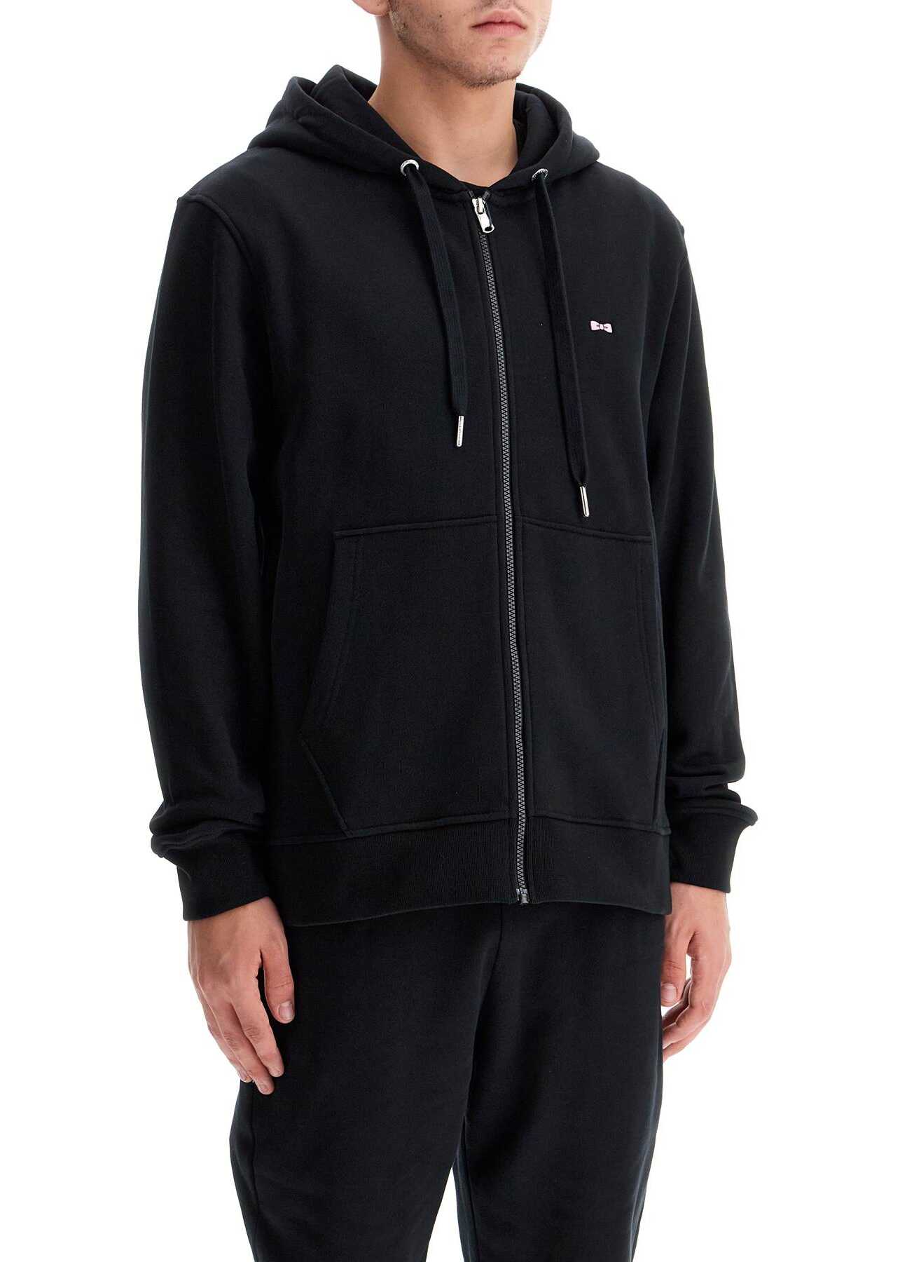 The Eden Park hoodie is made of brushed cotton jersey and features a full zip closure and a small logo patch on the chest. It has a kangaroo pocket, ribbed edges, and a regular fit. The model is 182 cm tall and wears size L.