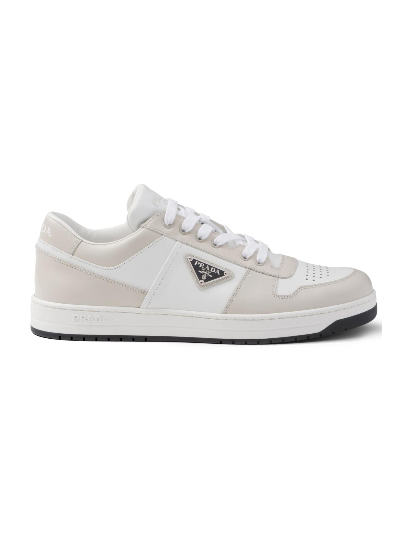 Prada’s Downtown sneakers are a court-inspired style with signature detail. They’re panelled from white and light-grey leather with rugged topstitching and perforated toes then branded from heel to tongue – the enamelled triangle logo appliquéd at the sidewall debuted in 1913 and remains the label's most famous emblem.