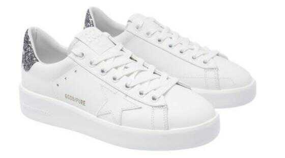 white calf leather glitter detailing signature star patch to the sides round toe front lace-up fastening branded insole flat rubber sole