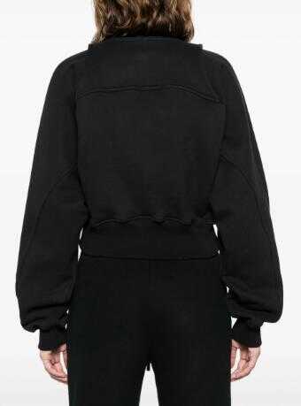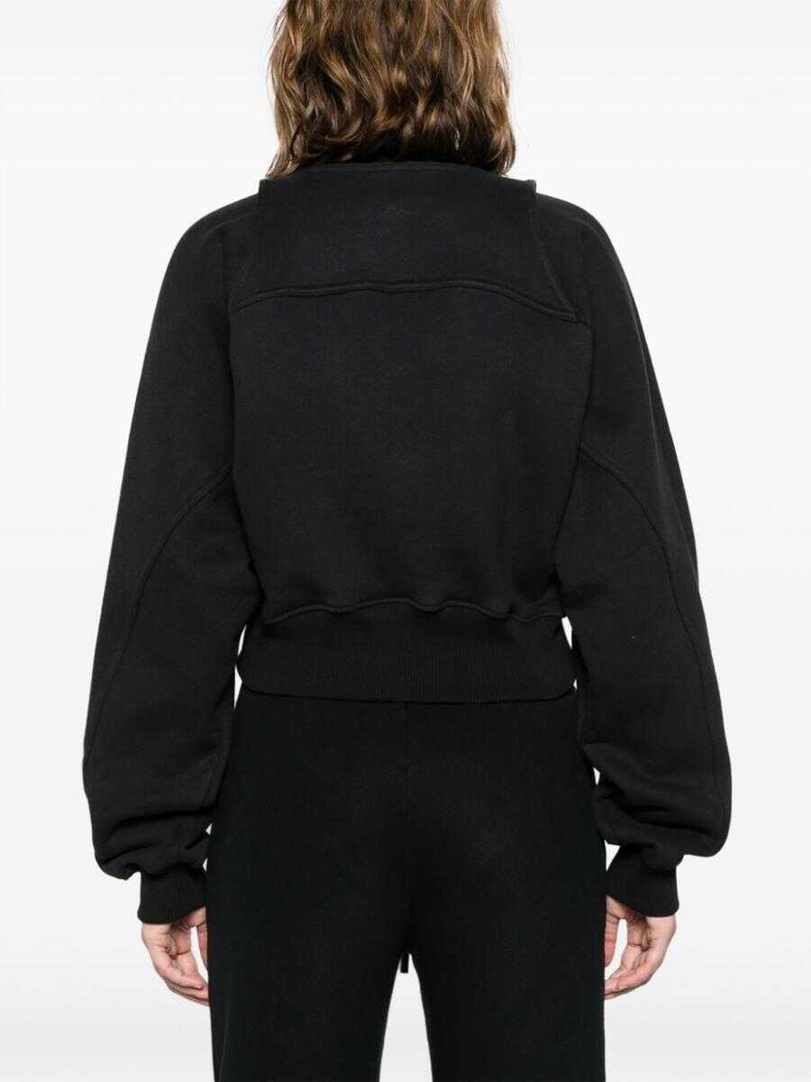 black cotton jersey texture layered details embroidered logo to the front drawstring hood long sleeves ribbed cuffs and hem cropped