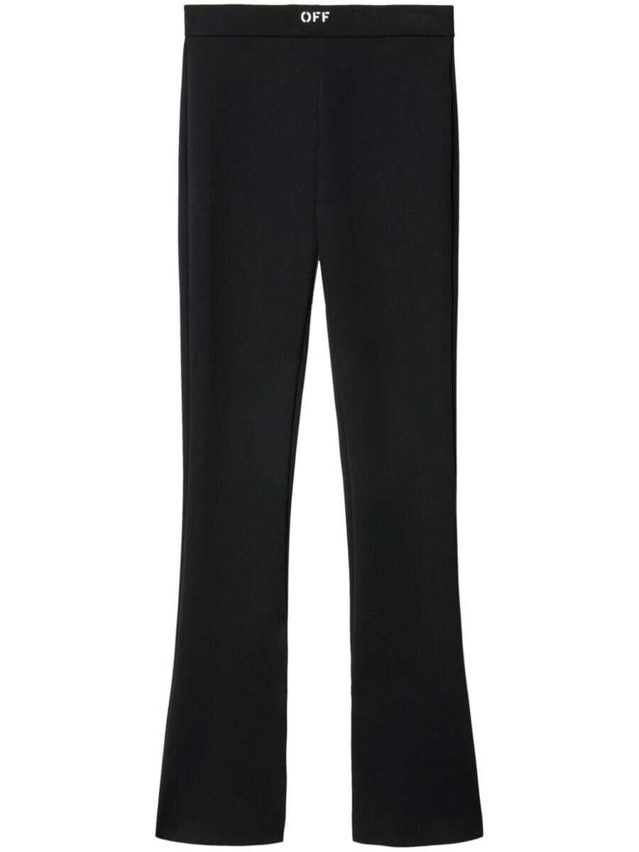 black jersey texture logo print to the front elasticated waistband split cuffs flared