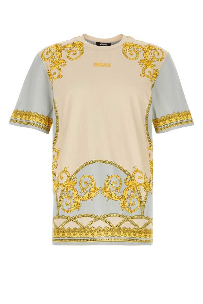 Multicolor cotton t-shirt from Versace featuring short sleeves, round collar, all over print and regular vestibility.