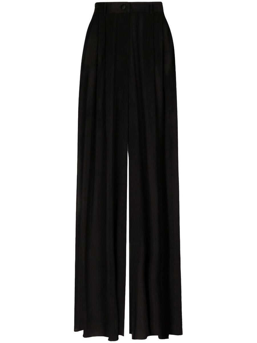 wide-leg stretch-silk trousers from DOLCE & GABBANA featuring black, stretch-silk, semi-sheer construction, high-waisted, wide leg, elasticated waistband, floor-length and detachable shorts.