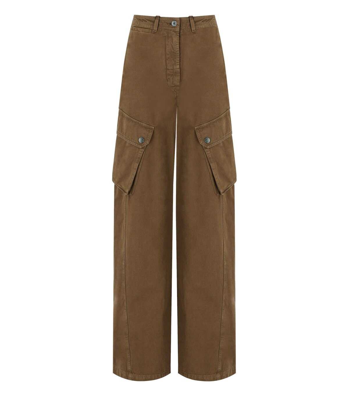 Elvy cargo pants by Max Mara Weekend made of pure cotton gabardine, in brown color. Characterized by a mid-rise waist with a wide leg, it features a front closure with a hidden zip and button. French pockets on the sides. Patch pockets on the legs. Pleated pockets with flap and snap button on the back.