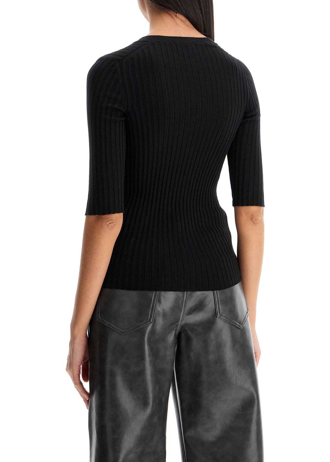 Crafted from a lightweight ribbed blend of cashmere and silk, this MRZ top features a simple design with short sleeves and a V-neckline. It has a fitted silhouette and the model is 177 cm tall and wears a size S.