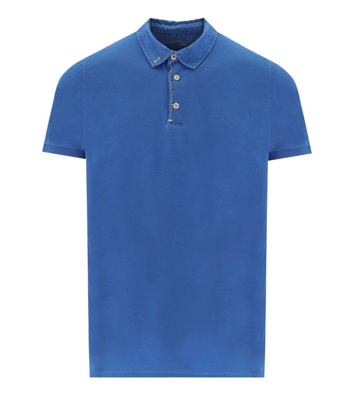 Milk polo shirt by Bob made of royal blue pique cotton, decorated with colorful embroidery on the button placket. Slim fit.