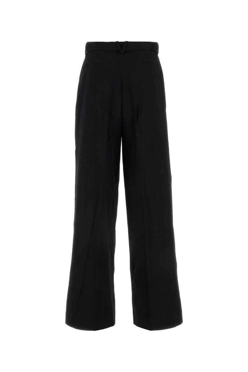 Black stretch wool wide-leg pant