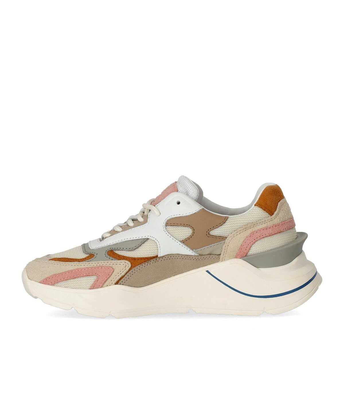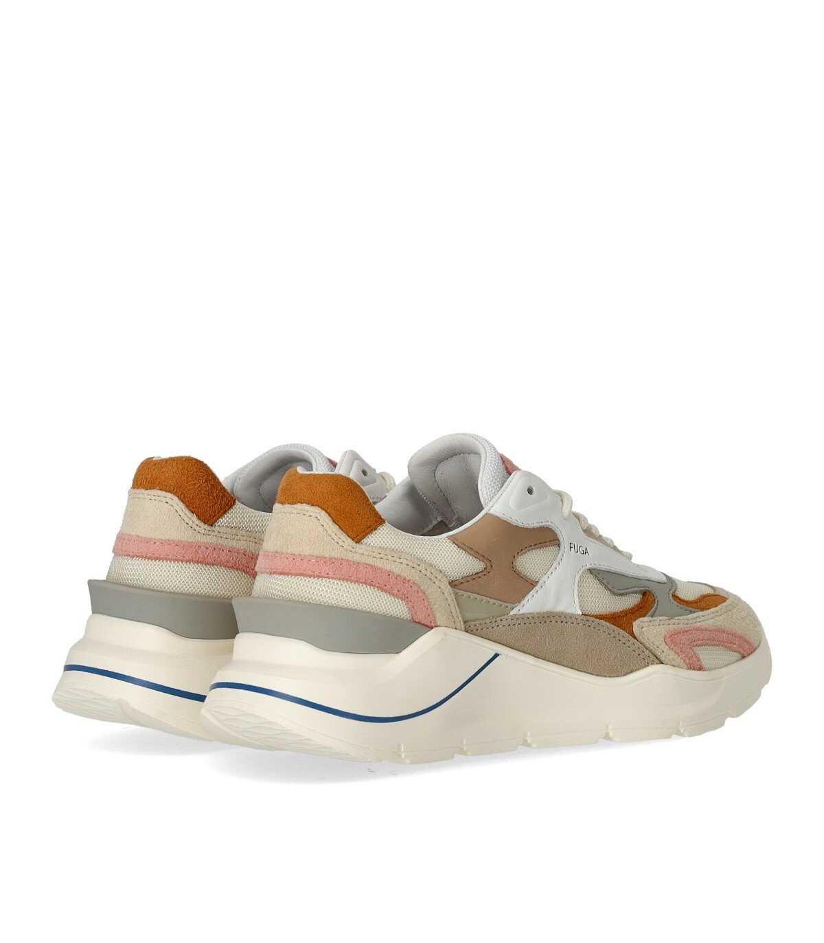 D.A.T.E. Colored Fuga sneaker made of cream-colored mesh, with details in multicolor leather and suede. Logo on the side and tongue, leather and cotton sponge interior, removable insole. White rubber running sole, 5 cm height.
