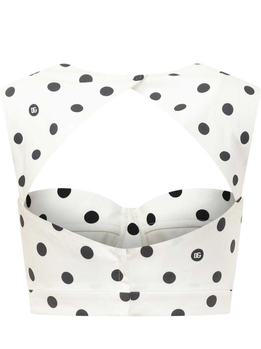 white/black stretch-cotton polka dot print sweetheart neck sleeveless concealed rear zip fastening open back cropped
