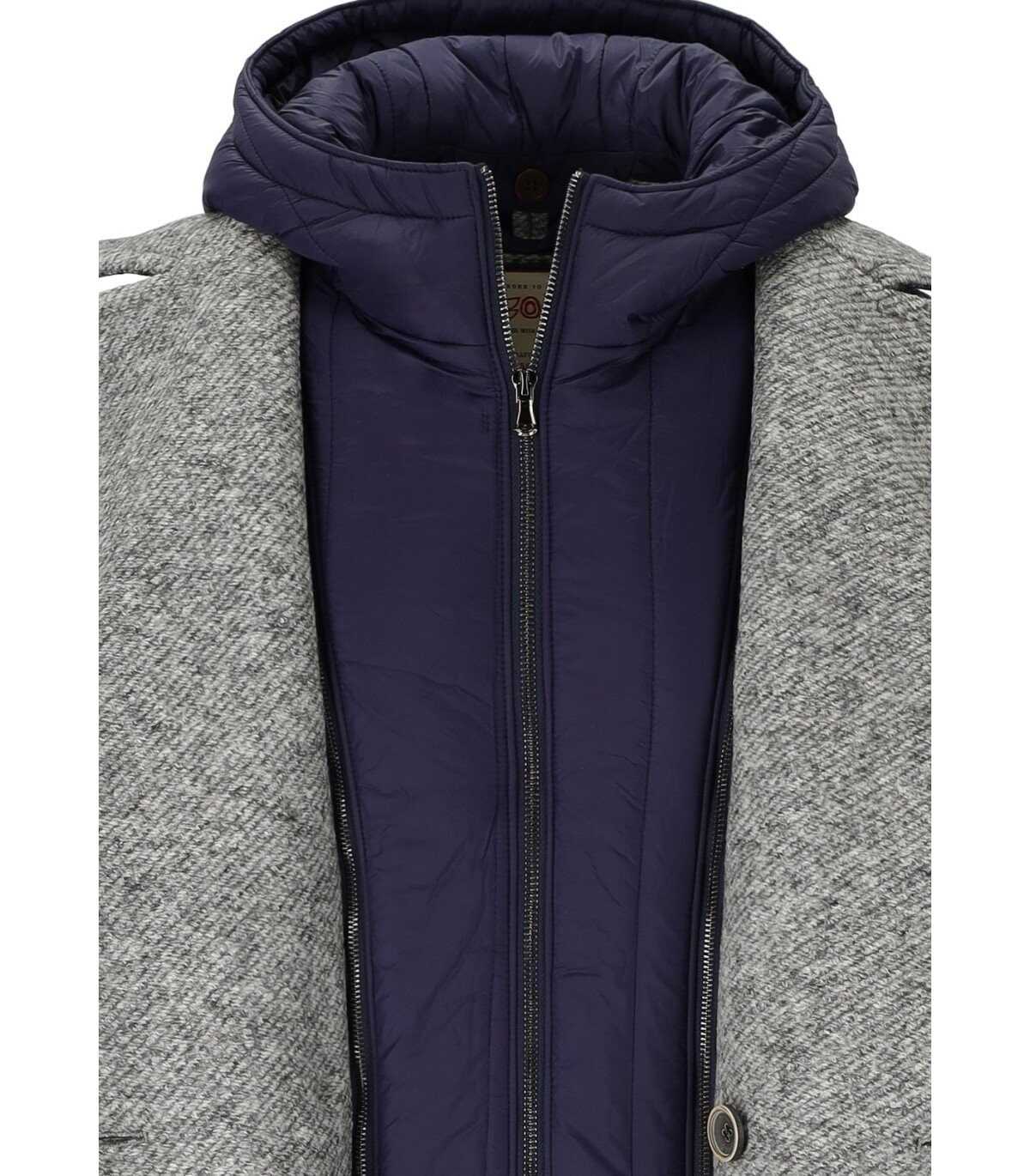 Iver double-breasted coat by Bob made of synthetic fiber polyester and cotton in gray color. Lined interior, removable blue nylon hood. Flap pockets on the front with front buttons for a better fit. Buttoned cuffs. Full zip closure. Composition: 56% polyester, 21% cotton, 21% virgin wool, 2% elastomer.