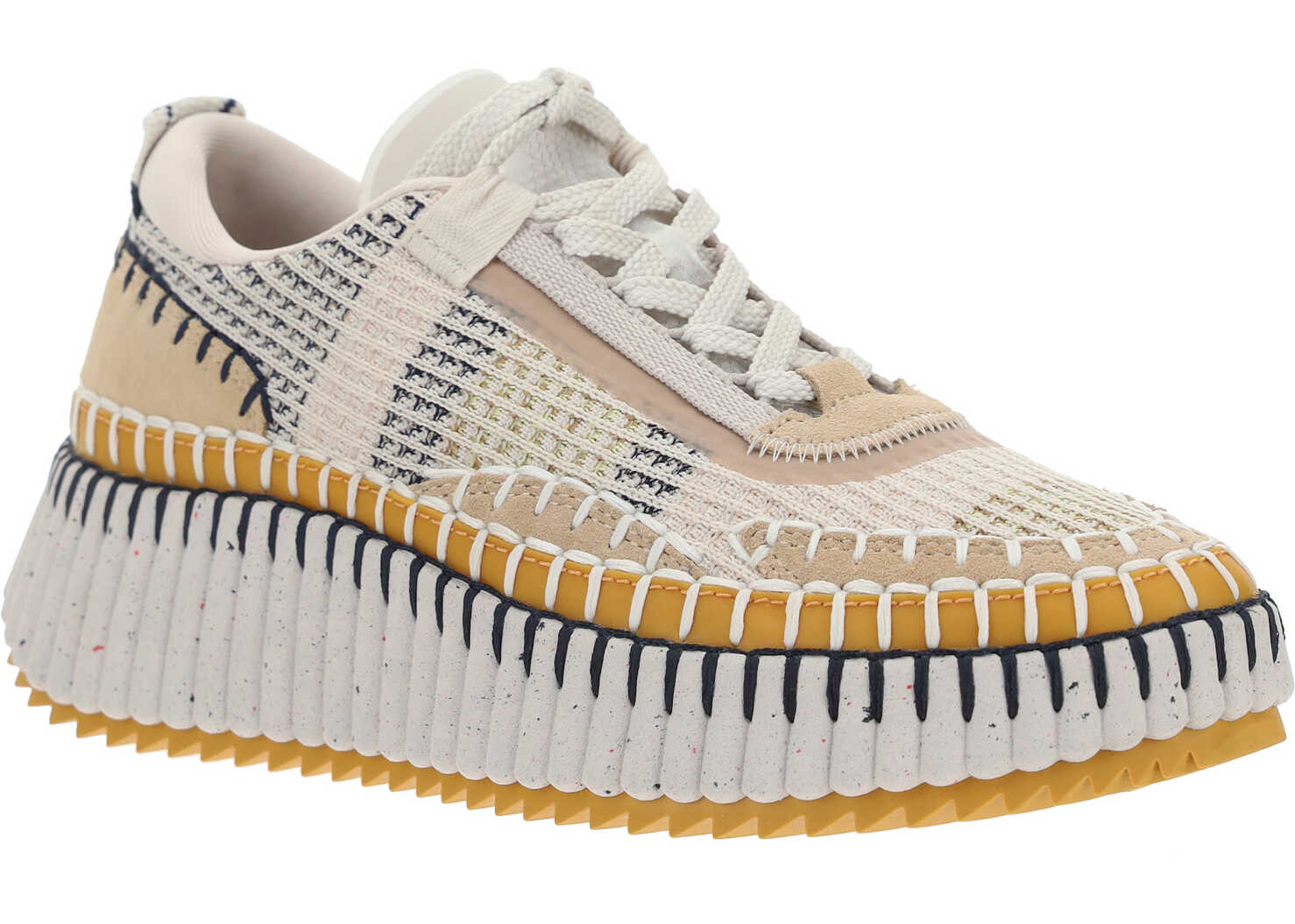 The Nama Sneakers by Chloé combine contemporary aesthetics and sustainable commitment. Featuring a lace-up front closure, they feature a mesh design on the side panels that ensures breathability and lightness. The textured sole lends character and comfort to the stride, while the brand's iconic monogram is pressure-stamped on the heel for a distinctive touch. The insole, also pressure-printed with logos, completes the design. Made entirely from recycled materials, they strike the perfect balance between style and environmental responsibility.