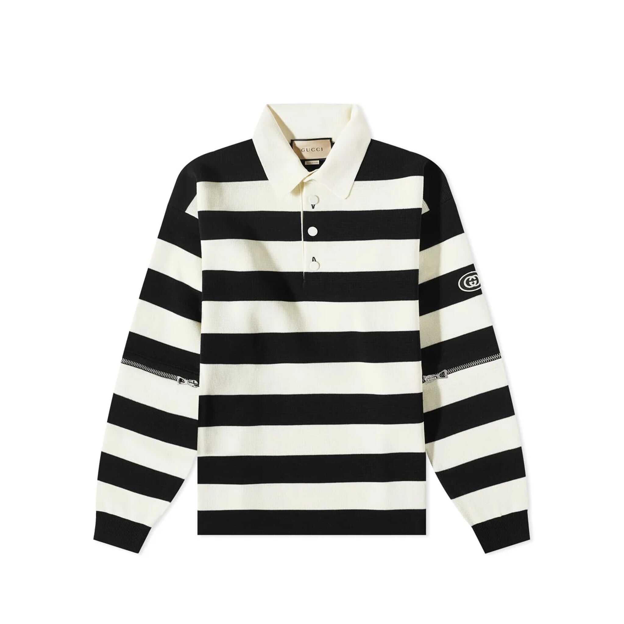 Upgrade your wardrobe with this stylish Gucci Cotton Logo Polo Shirt. Made from 100% cotton, it features a buttoned collar, stripe pattern, and detachable sleeves. The side logo detail adds a trendy touch. Perfect for men, this shirt is machine washable for easy care. Enhance your style with this high-quality Gucci shirt.