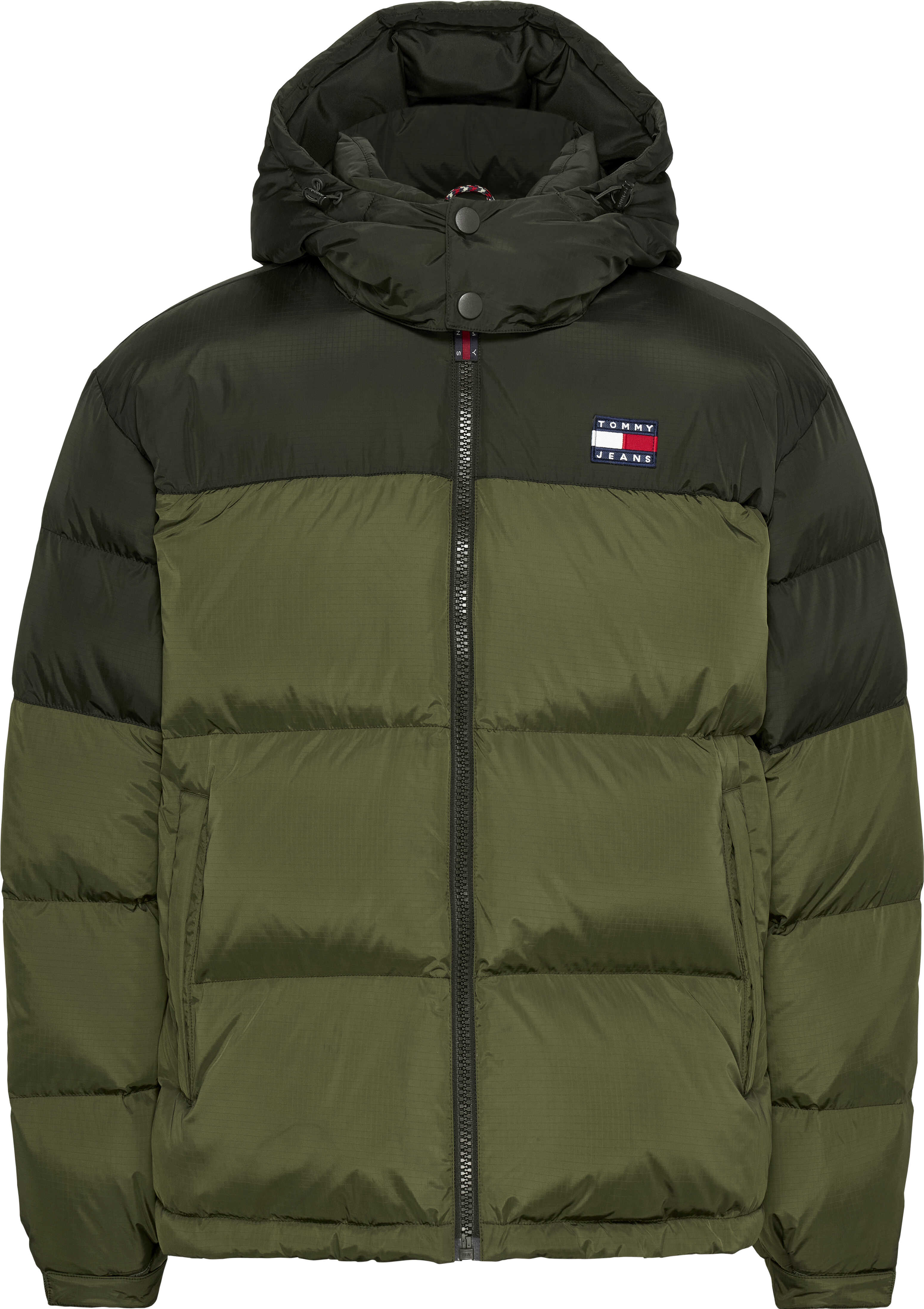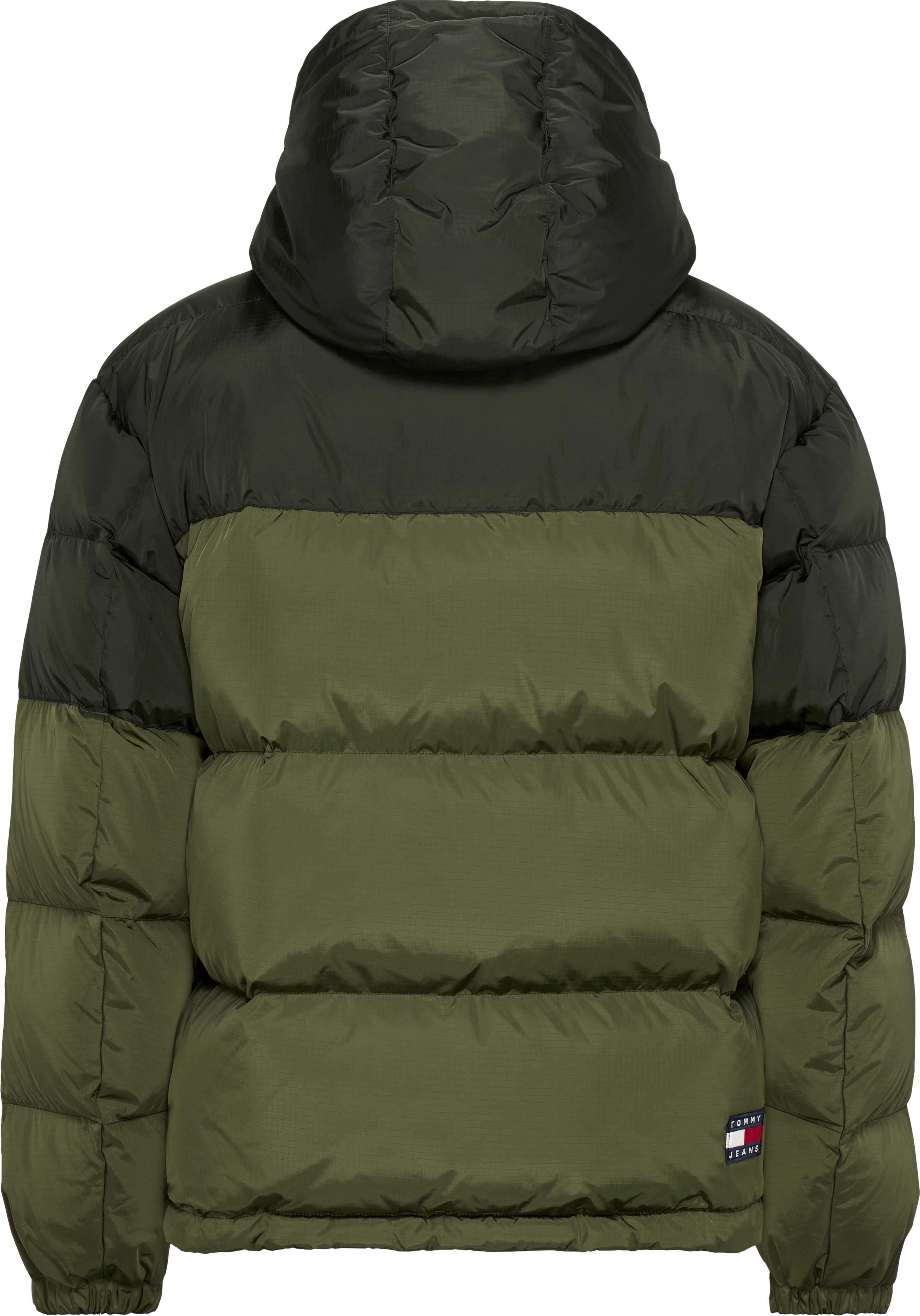 main features Recycled polyester Padded Color block motif Collar with hood and drawstring Stand-up collar with chin guard Full zip Two angled pockets at the waist Internal welt pocket Tommy badge on chest Tommy Jeans branding Model and fit Regular fit Composition and washing 100% recycled polyester Padding in recycled polyester Recycled polyester lining Filling weight: 356g