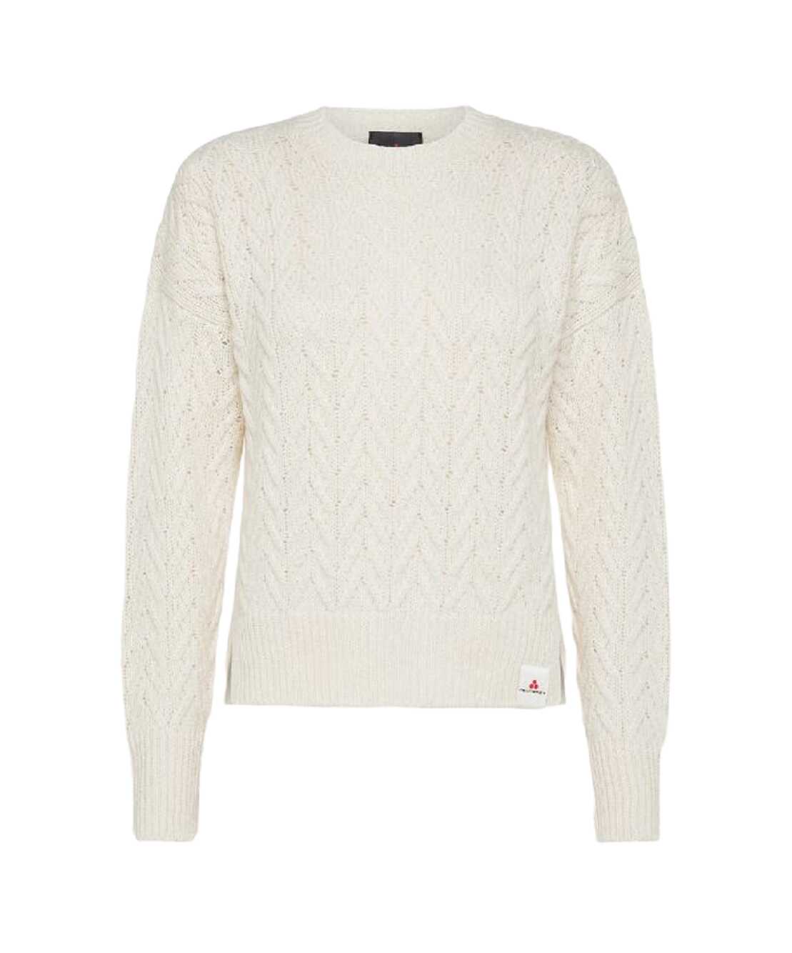 Crew-neck sweater in alpaca cotton with herringbone pattern. Side slits and ribbed trim on cuffs and waist. A refined model that embellishes a casual look. Long sleeves Herringbone pattern Made of alpaca cotton