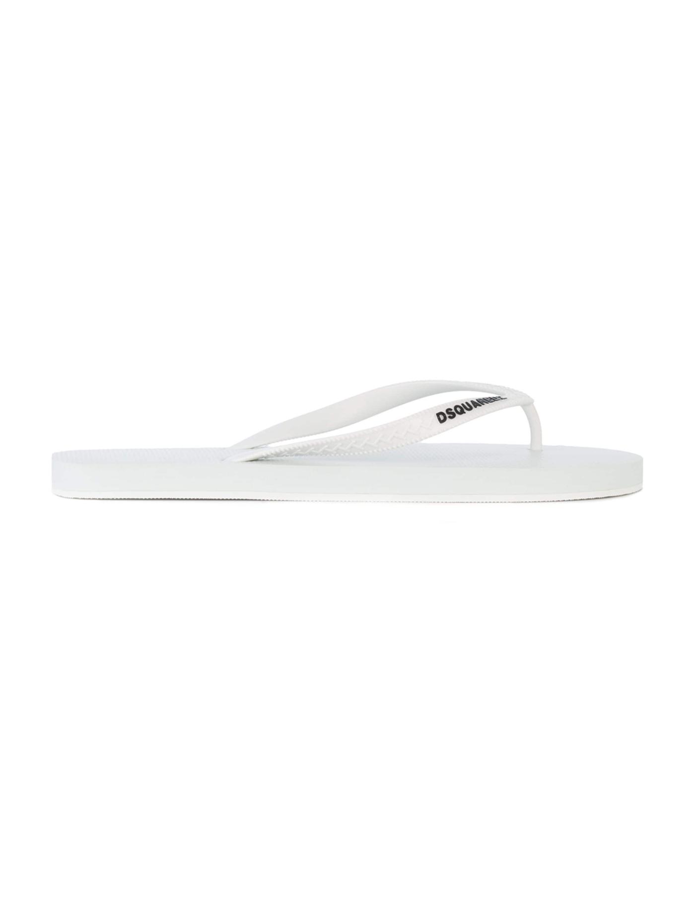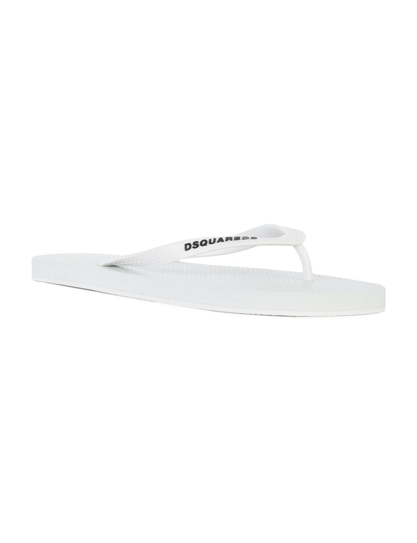 - DSQUARED2 combine expert Italian craftsmanship with their penchant for menswear tailoring to provide a collection of wardrobe essentials for the modern gentleman. These white flip-flops from DSQUARED2 featuring a branded strap and a flat rubber sole.