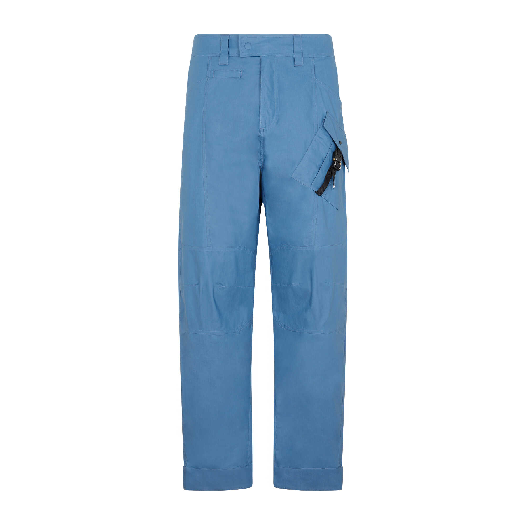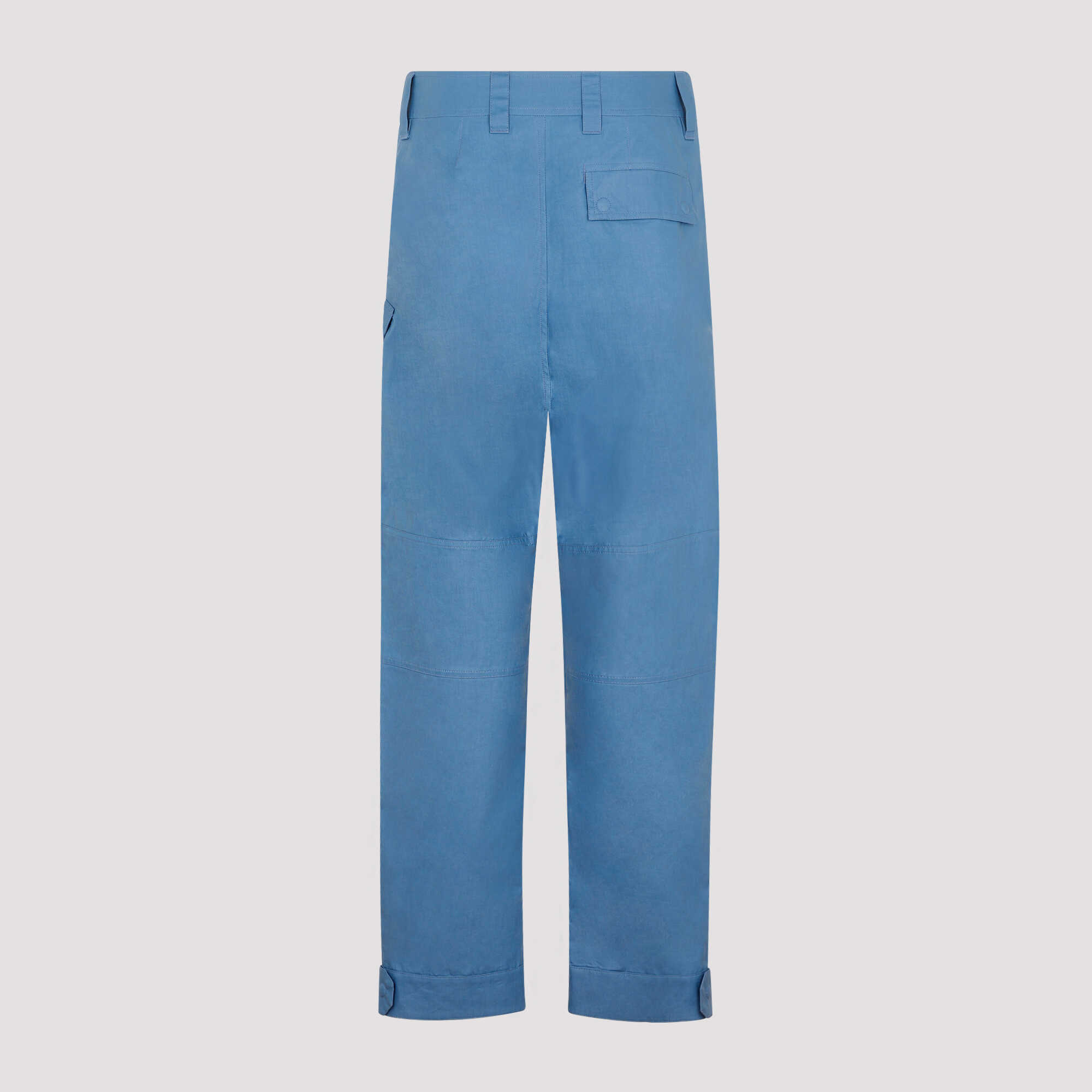 Dior Homme Blue Cotton Cargo Pants. Blue cotton, regular waist, concealed front fastening, belt loops, Front welt pockets, side flap pocket and back flap pockets, Knee paneling, logo details.