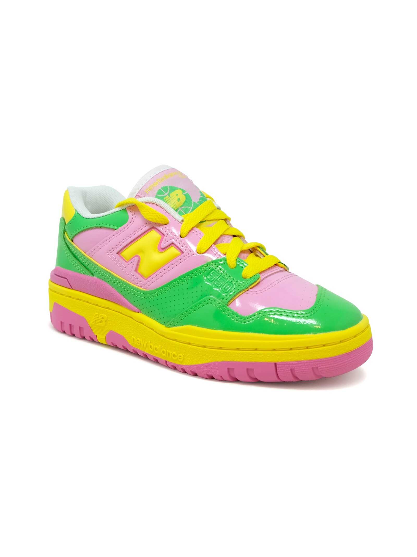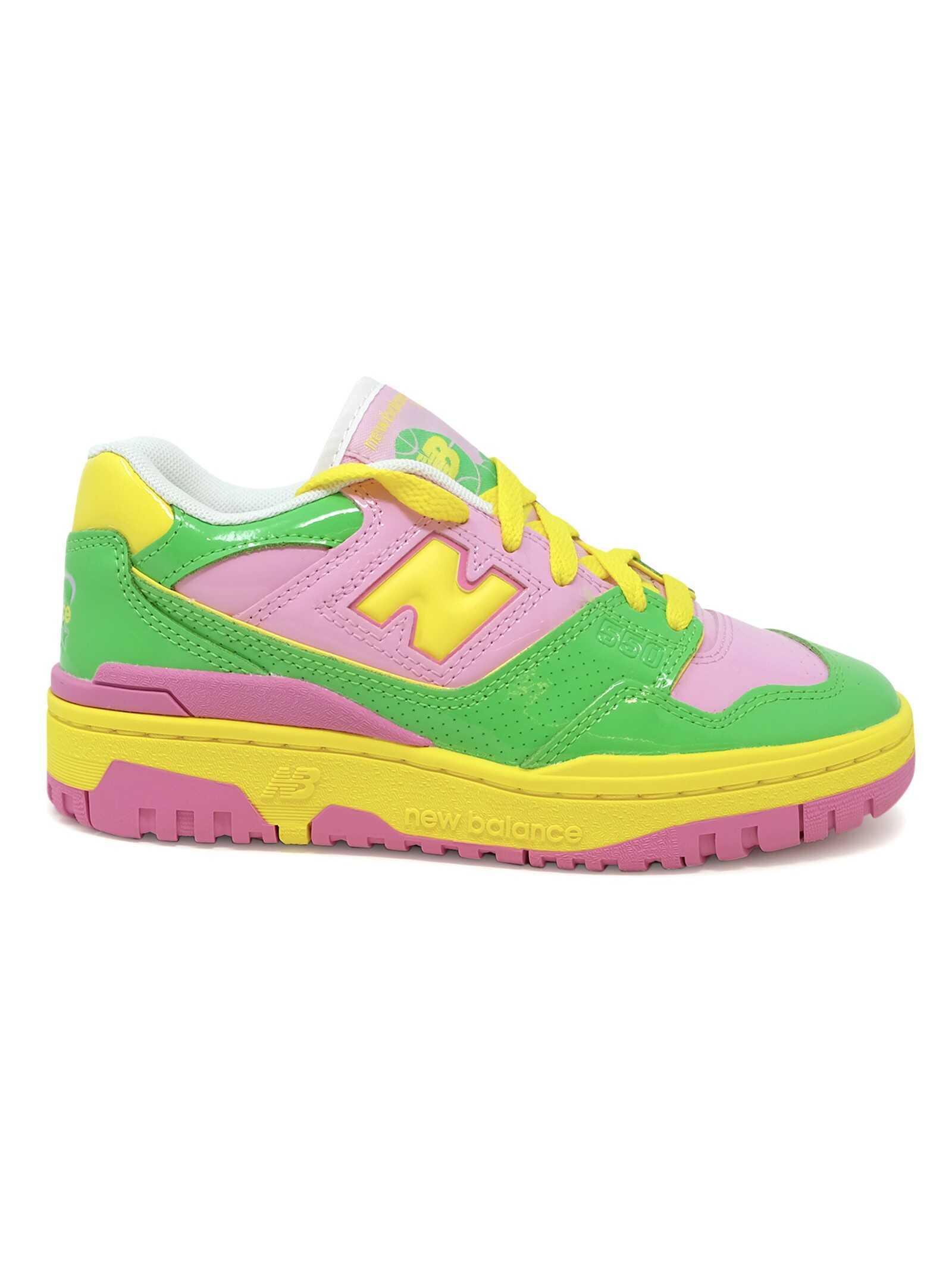 NEW BALANCE BB550YKA PINK/GREEN LIME LEATHER/SYNTHETIC/TEXTILE SNEAKER, color PINK/ GREEN LIME, material LATHER/SYNTHETIC/TEXTILE, season FW23