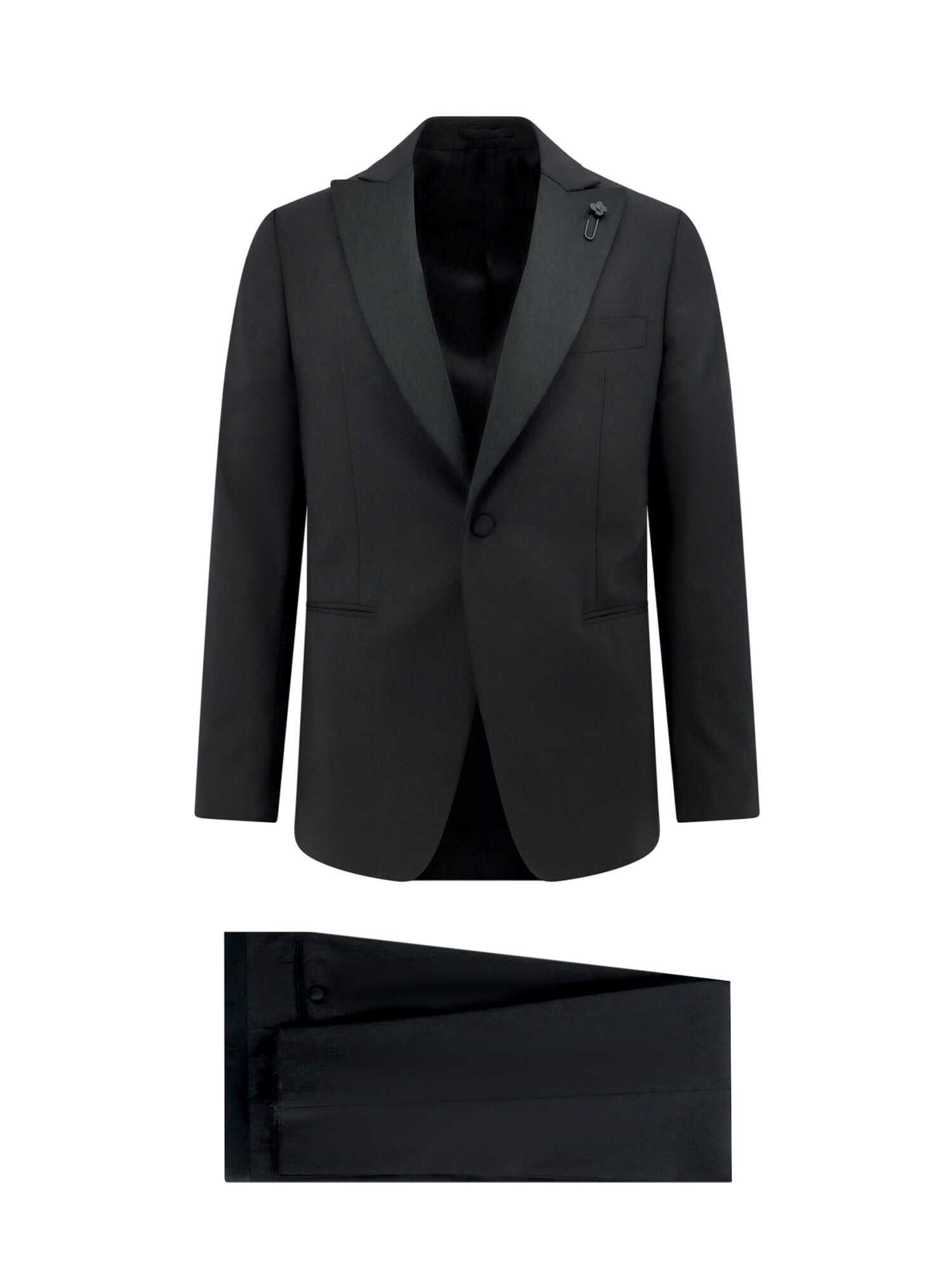 Blazer with peak lapel and closure with one button, One breast pocket and two welt pockets, Trouser with buttons and zip with four pockets, Made in Italy, 95% wool 5% elastane