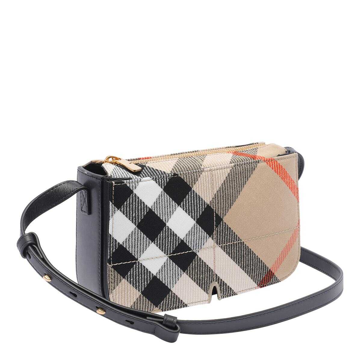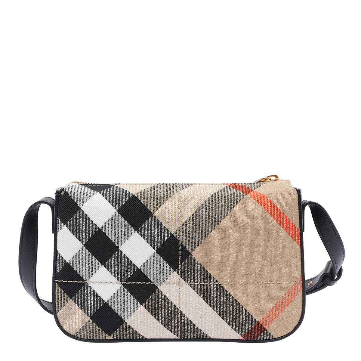 Burberry Beige Check Crossbody Bag, Zip Closure, External Pocket With Magnetic Closure, Adaptable Strap, Check Motif, 12,5x20,5x6 cm