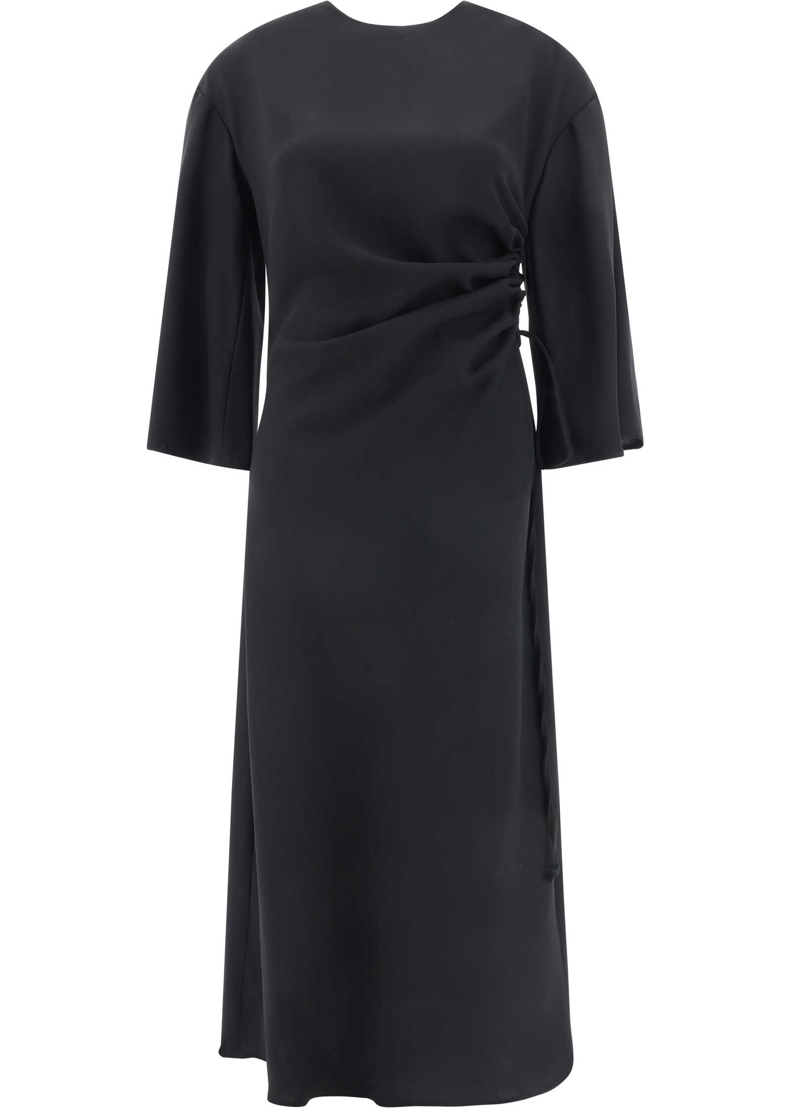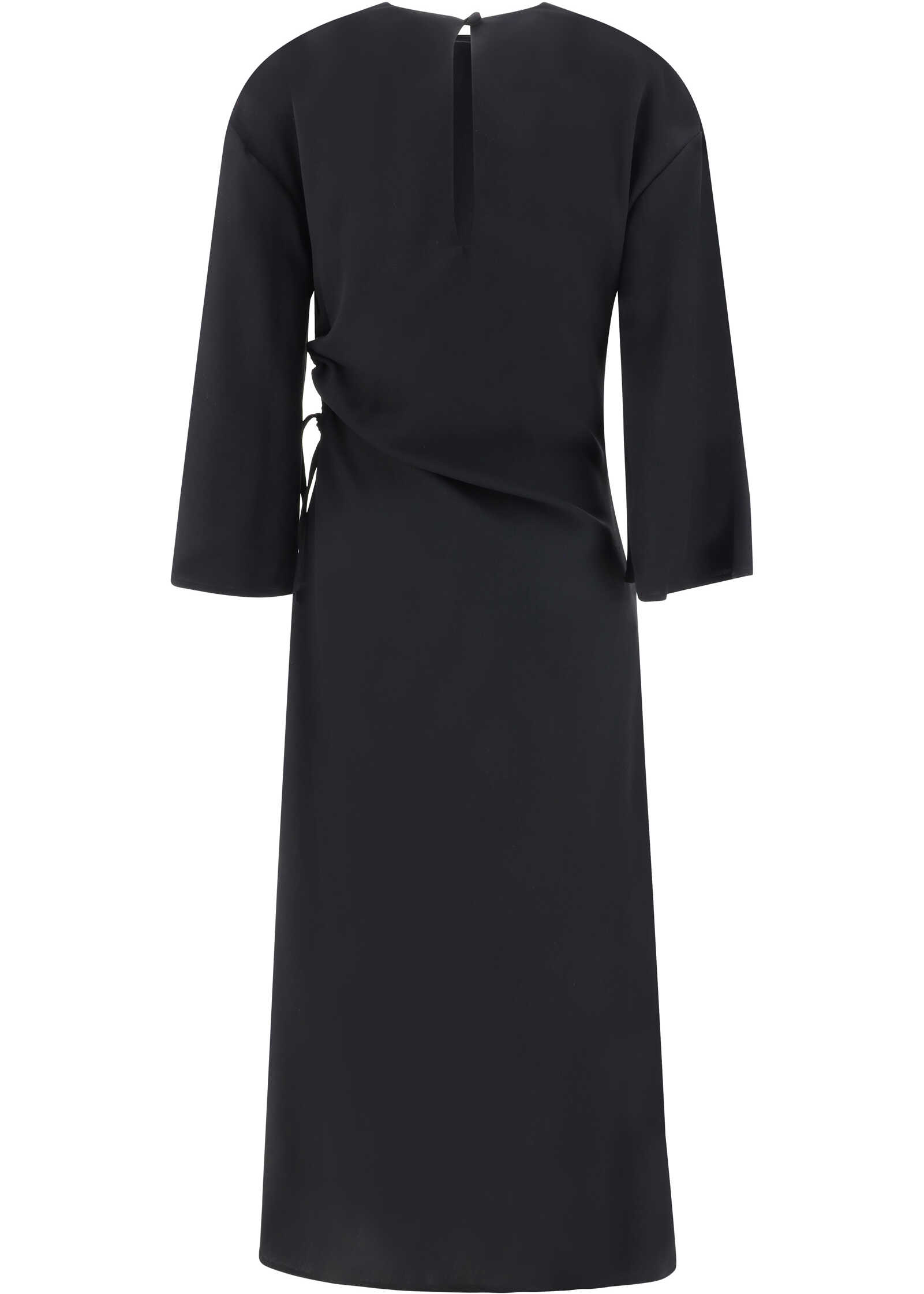 Virgin Wool Midi Bassano Dress by Crida Milano, flared long sleeve design, classic crew neck, button back closure, adjustable side cut-out detail, monochrome pattern, regular fit.