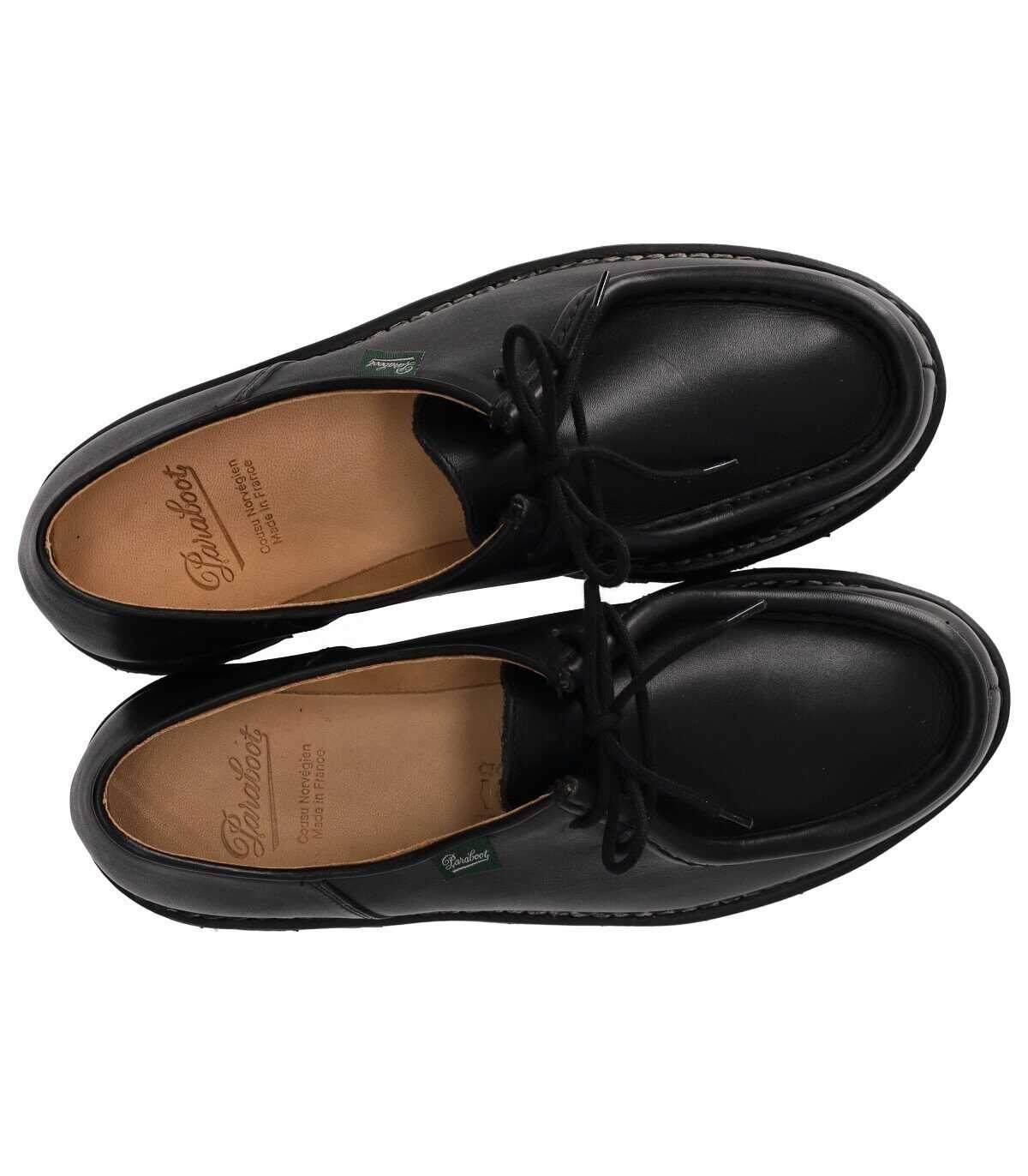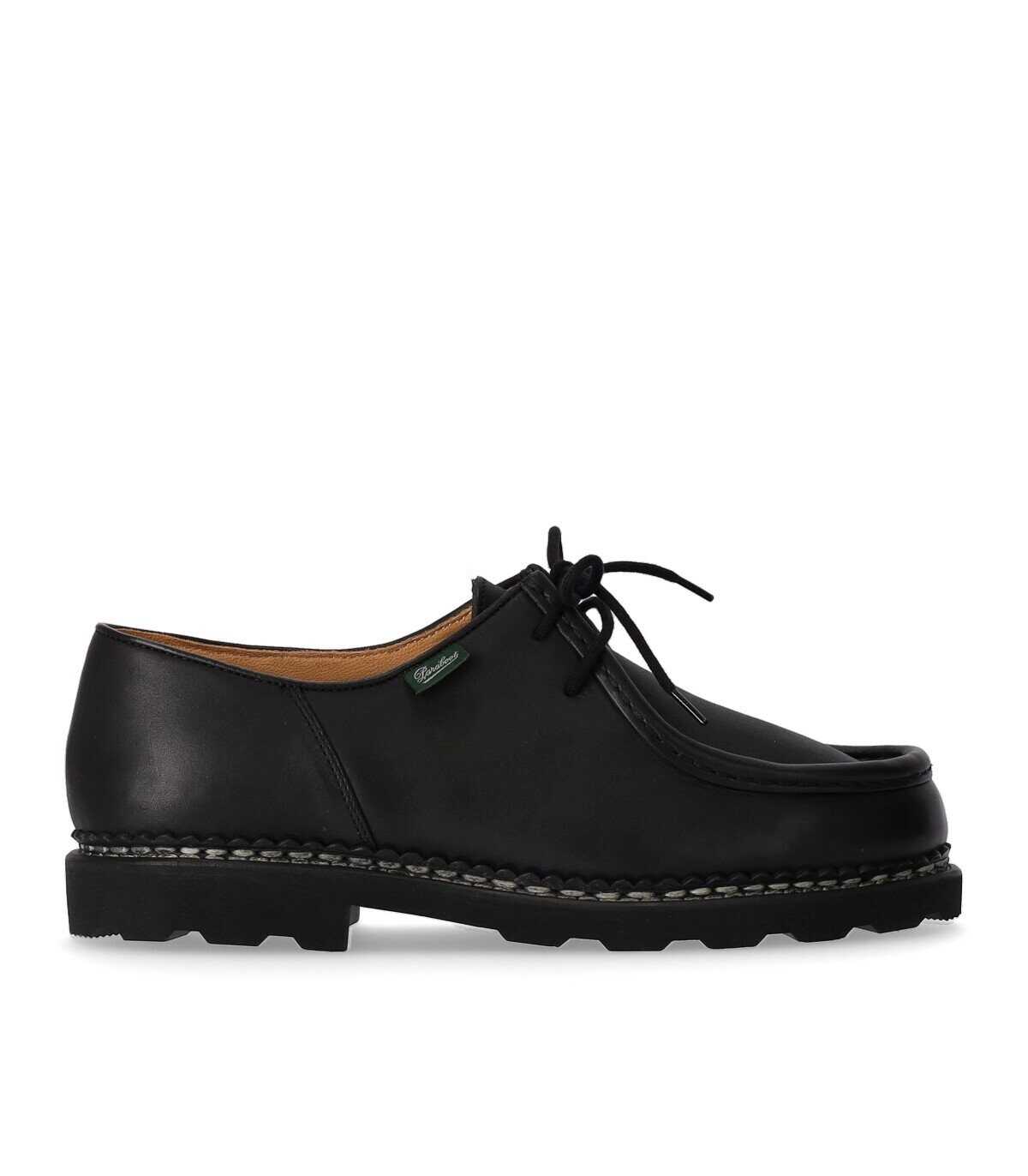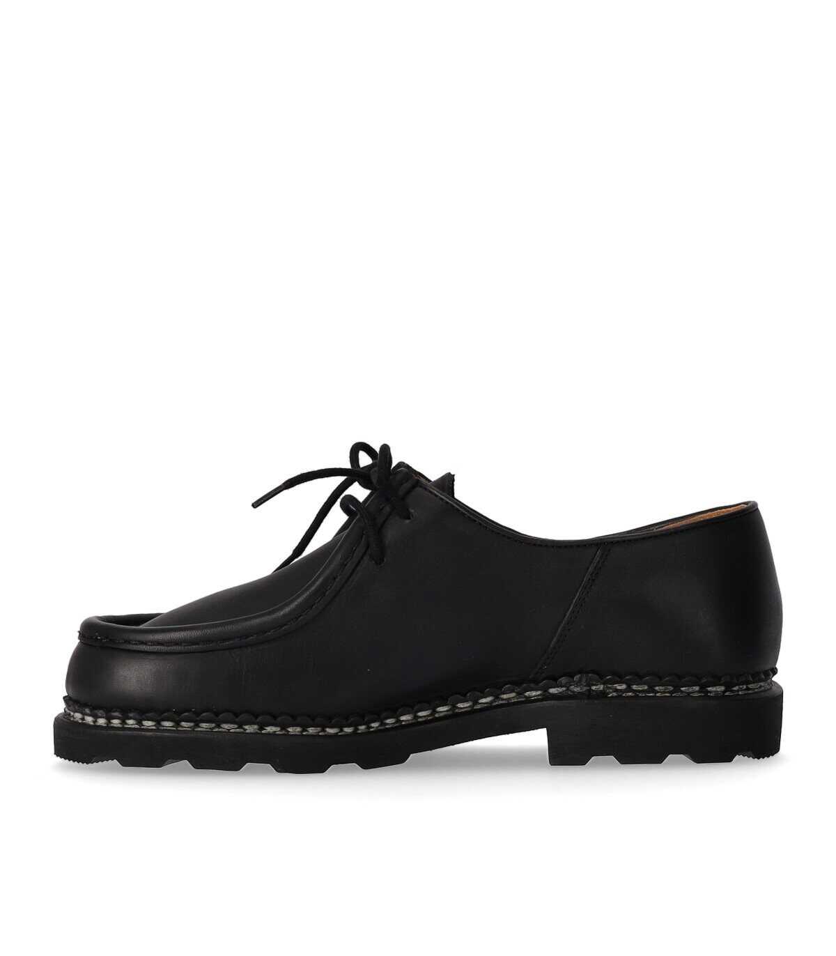 Paraboot Michael/Marche II derby lace-up made in soft black leather, with leather lining and insole. Double stitching that combines the upper and sole made using the Norwegian technique, which makes the shoe resistant, waterproof and resoles. Cotton laces and logo label on the side. Black rubber sole, height 3.5 cm.
