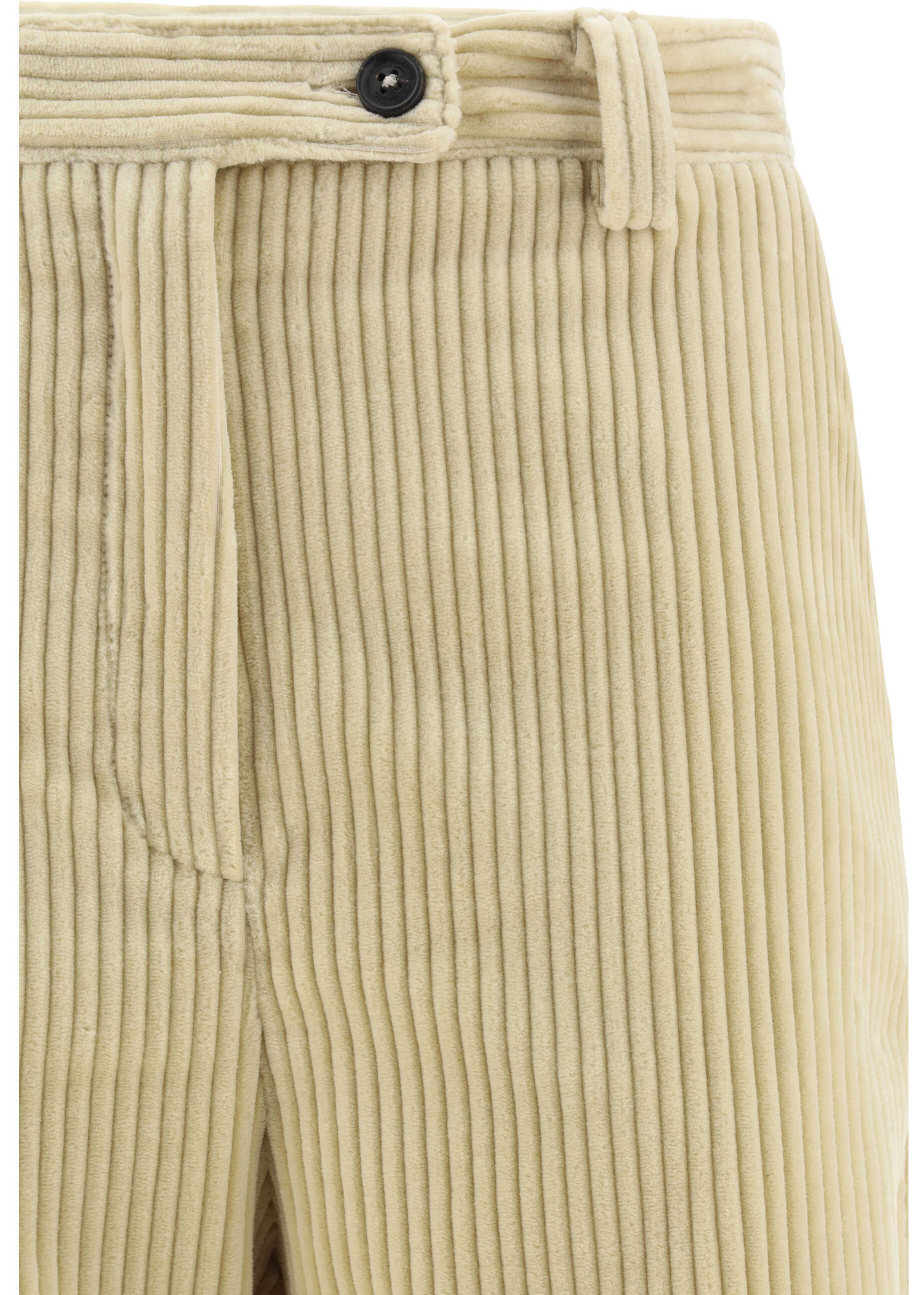 Cotton Lamia Pants by Massimo Alba, waistband loops, front zipper and button closure, two side slit pockets, velvet-effect ribbed design, monochrome pattern, two back button pockets, regular fit.