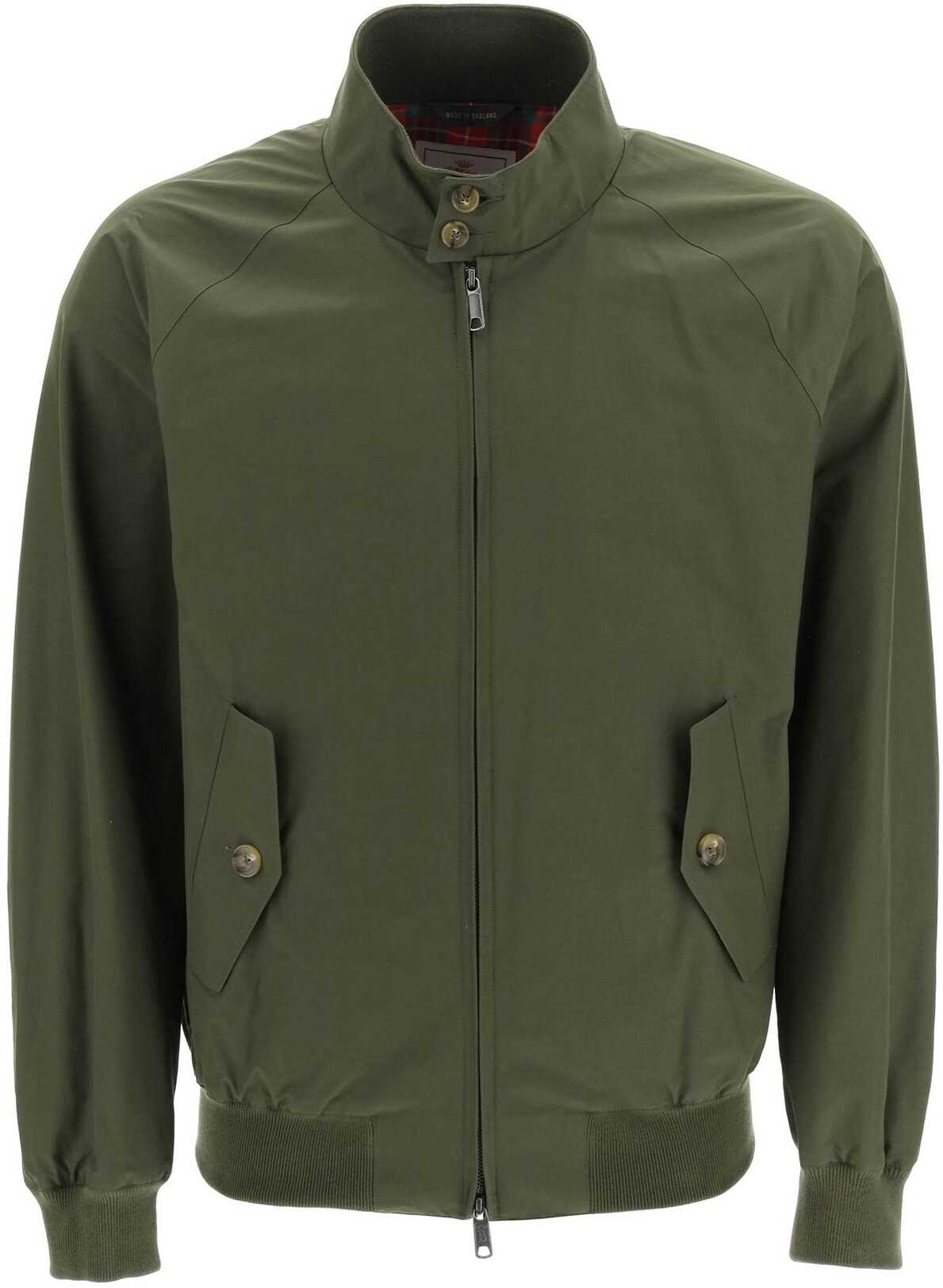 Baracuta jacket made of breathable Coolmax techno cotton with iconic Fraser Tartan cotton-blend lining. Regular fit with raglan sleeves, zip closure, two press buttons on the collar, side pockets with buttoned flap, ribbed finishes. Rear shaped yoke. The model is 187 cm tall and wears a size 40.