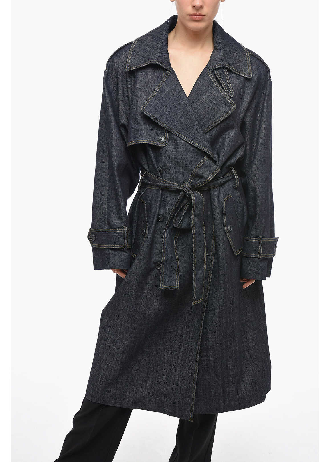 Denim Double-Breasted Aspos Trench With Notch Lapel