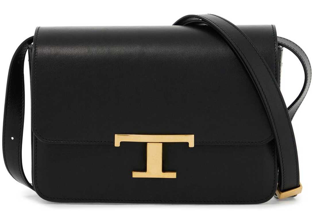 This Tod's shoulder bag is made of smooth leather with a boxy design and features a T Timeless gold metal closure. The interior is lined with suede microfiber and includes an open pocket, as well as an additional pocket under the flap. The adjustable strap allows for a versatile over-the-shoulder look.