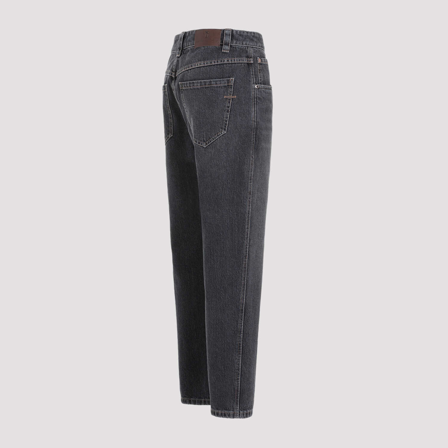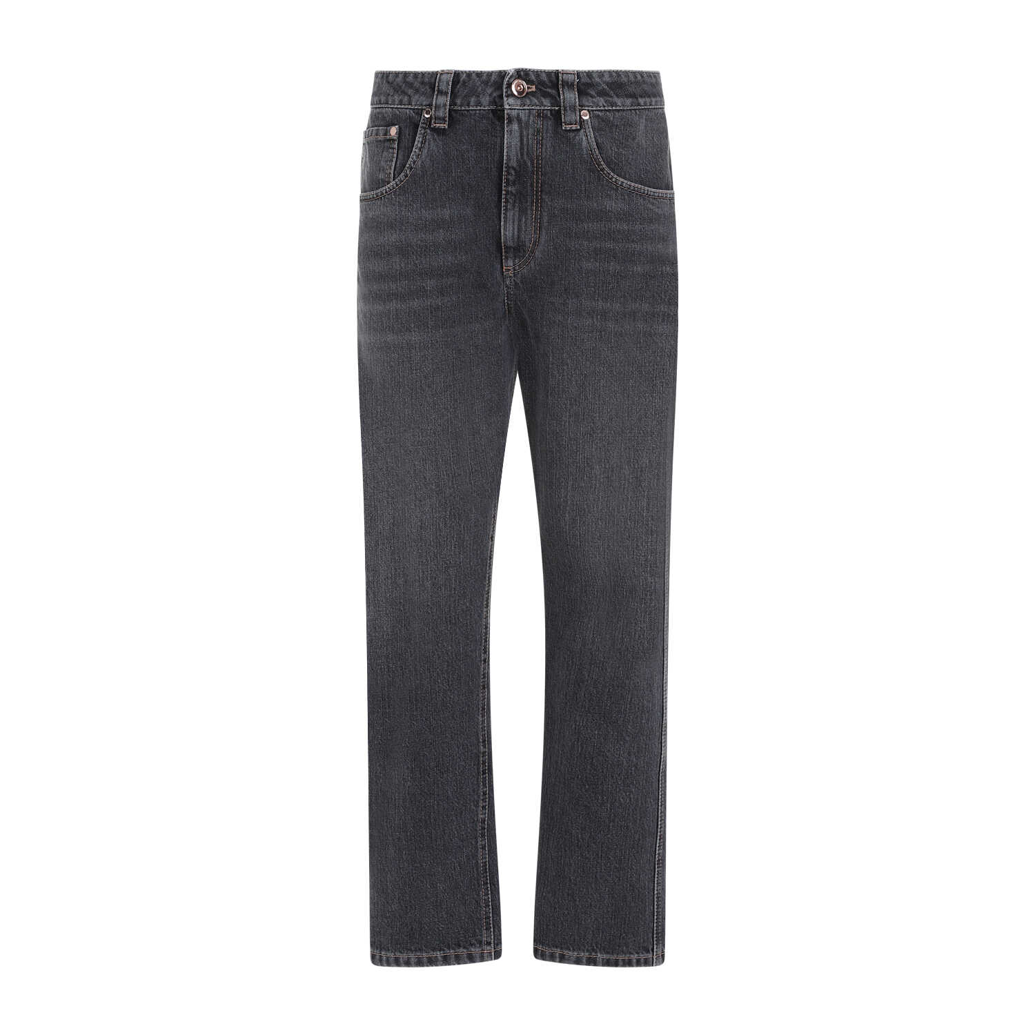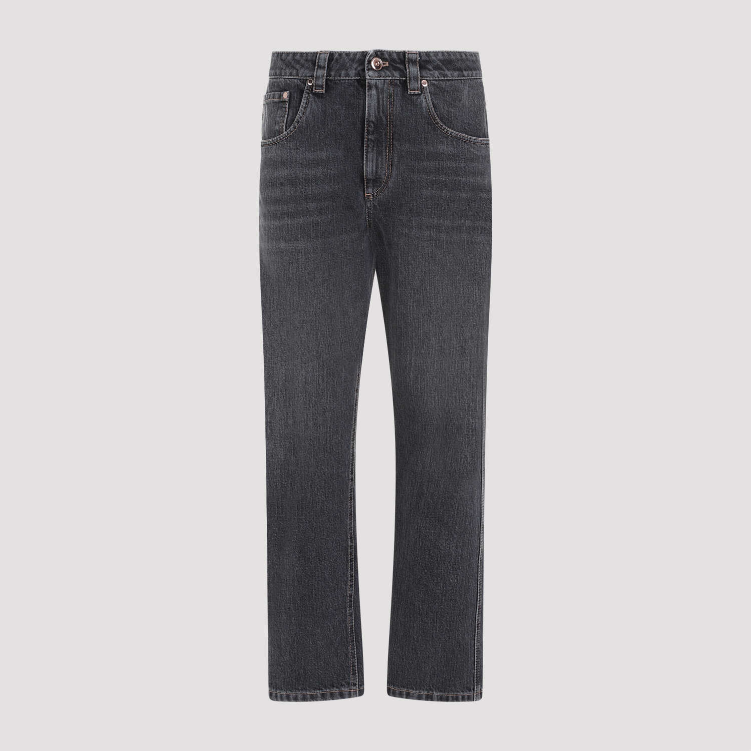 Brunello Cucinelli Black Stone Cotton Jeans. Black cotton denim, 5-pockets design, belt loops, button and zip closure on the front, back leather branded label, straight leg.