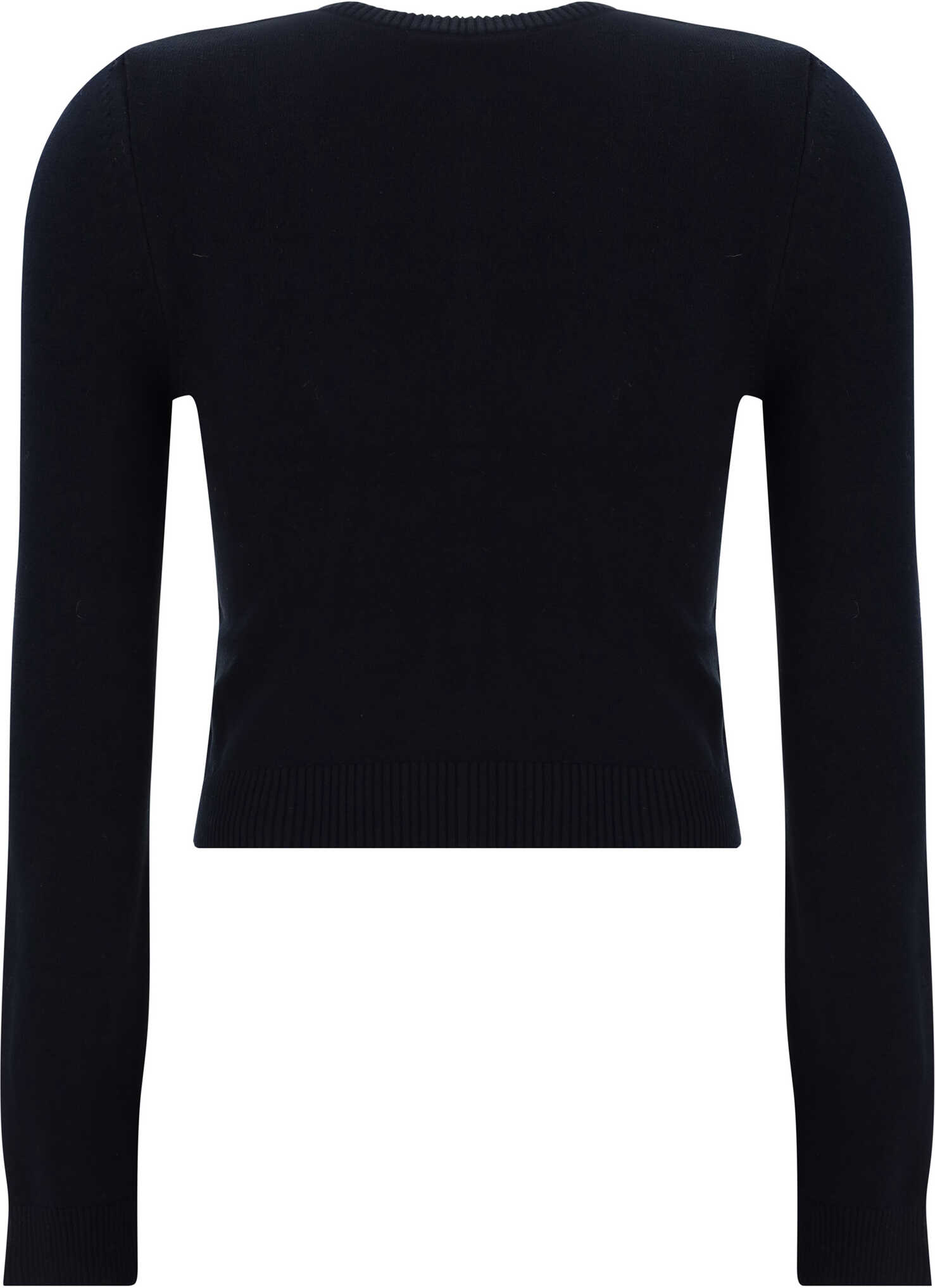 Cardigan by Marine Serre, ribbed crew neck, button front closure, ribbed hem, ribbed cuffs, iconic all-over contrasting embroidered brand logo, slim fit.