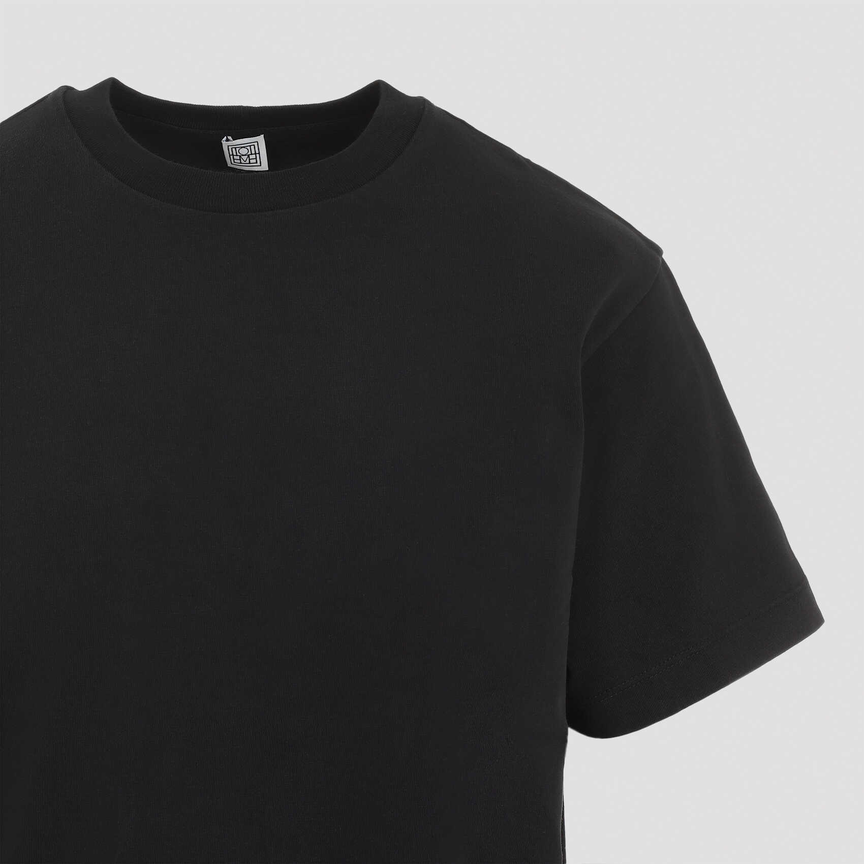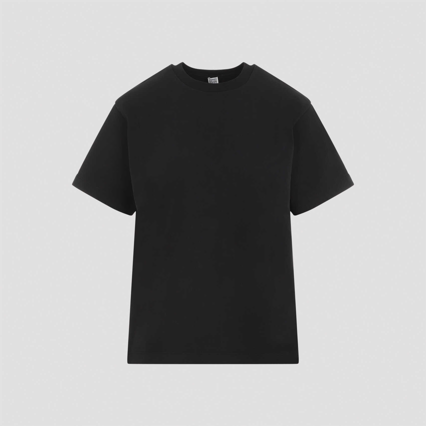 Elevate your everyday look with the TOTEME 243WRT0344FB0092 black t-shirt. Made from 100% organic cotton, this shirt features a ribbed round neck, short sleeves, and a boxy silhouette for a classy fit. Perfect for women who appreciate quality and style. Shop now and experience the luxury of TOTEME.