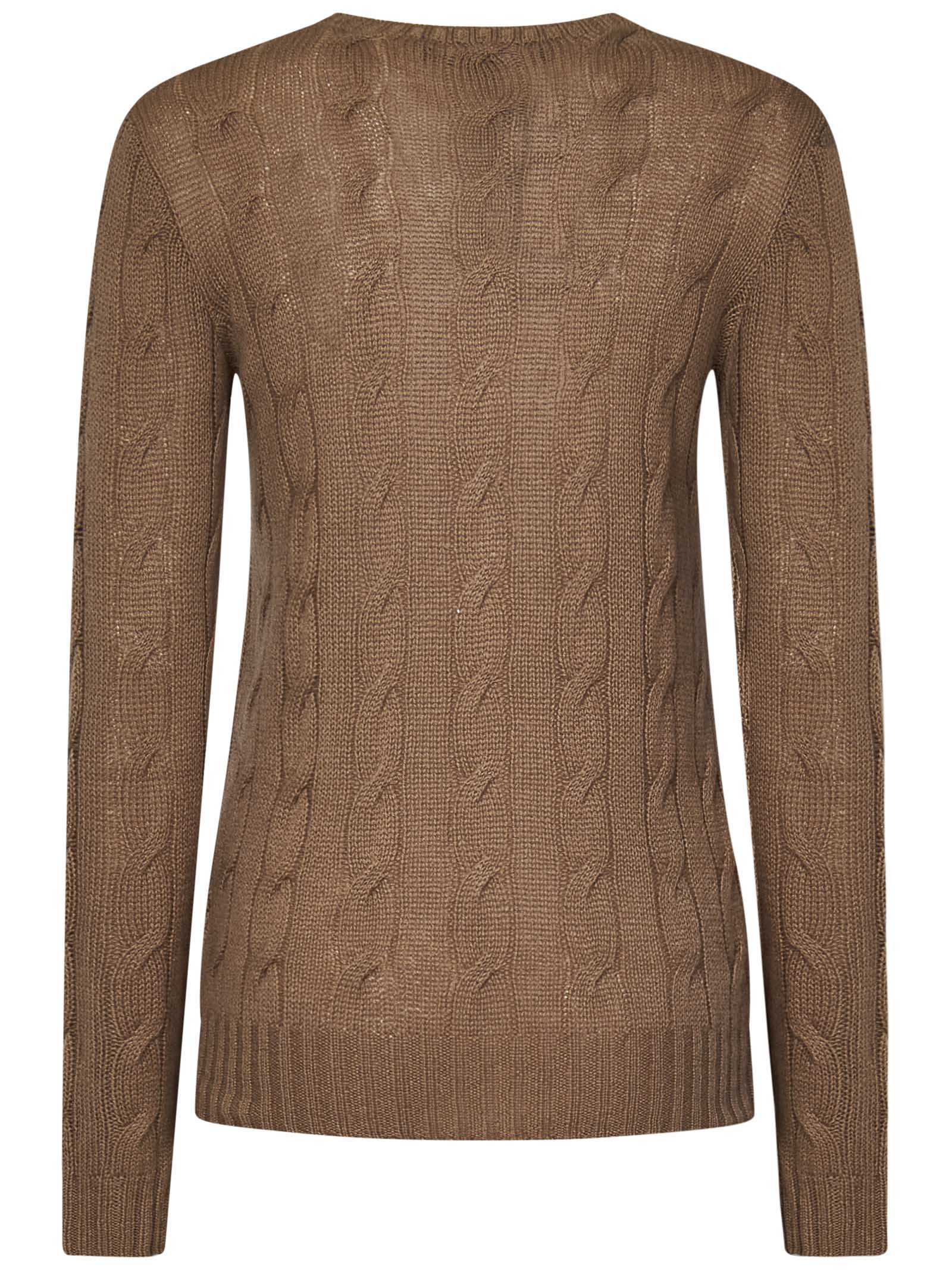 Indulge in luxury with this exquisite Ralph Lauren cashmere sweater. The slim fit design in brown cable knit is perfect for the modern woman. Made from 100% cashmere, this sweater exudes elegance and sophistication. Elevate your style with Ralph Lauren.