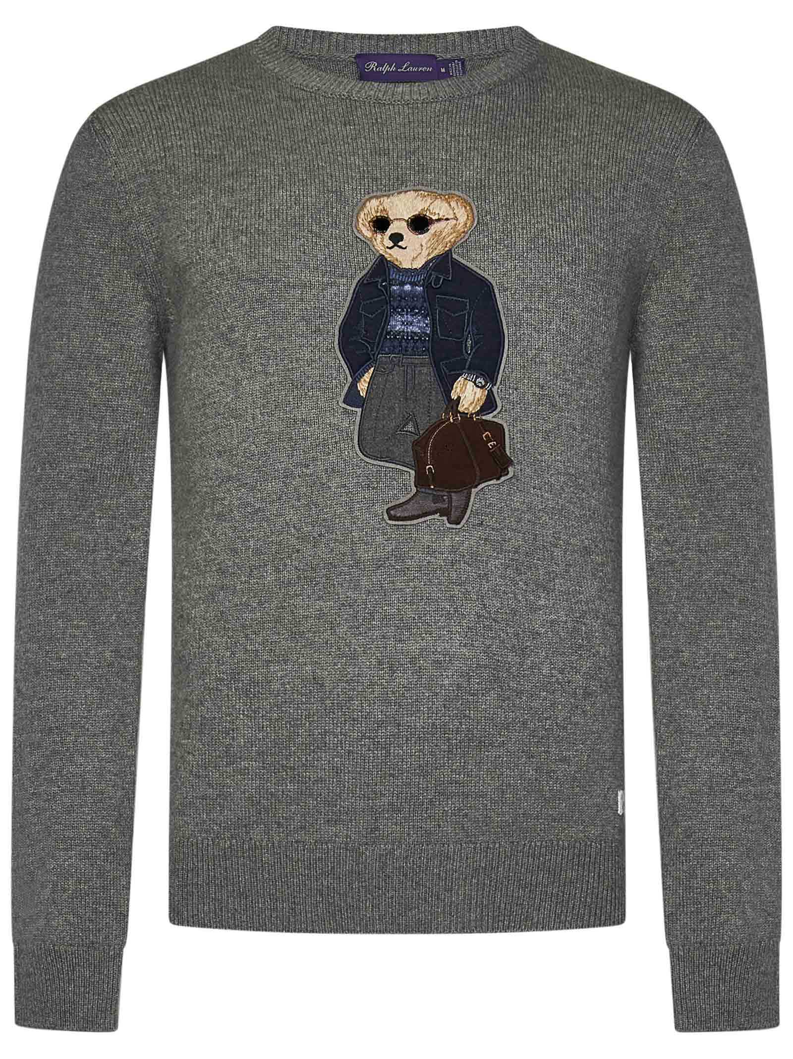 Stay cozy and stylish in this luxurious grey cashmere sweater from RALPH LAUREN. Featuring a classic crewneck design with a unique polo bear patch, this sweater is perfect for any occasion. Made from 100% cashmere, it offers both comfort and sophistication. Elevate your wardrobe with this timeless piece.