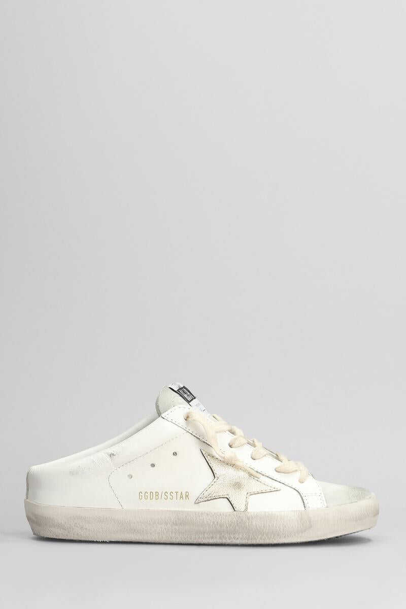 Superstar Sneakers in white leather, laces, logo on upper tongue, open back, rubber outsole, Made in Italy, 100% leather
