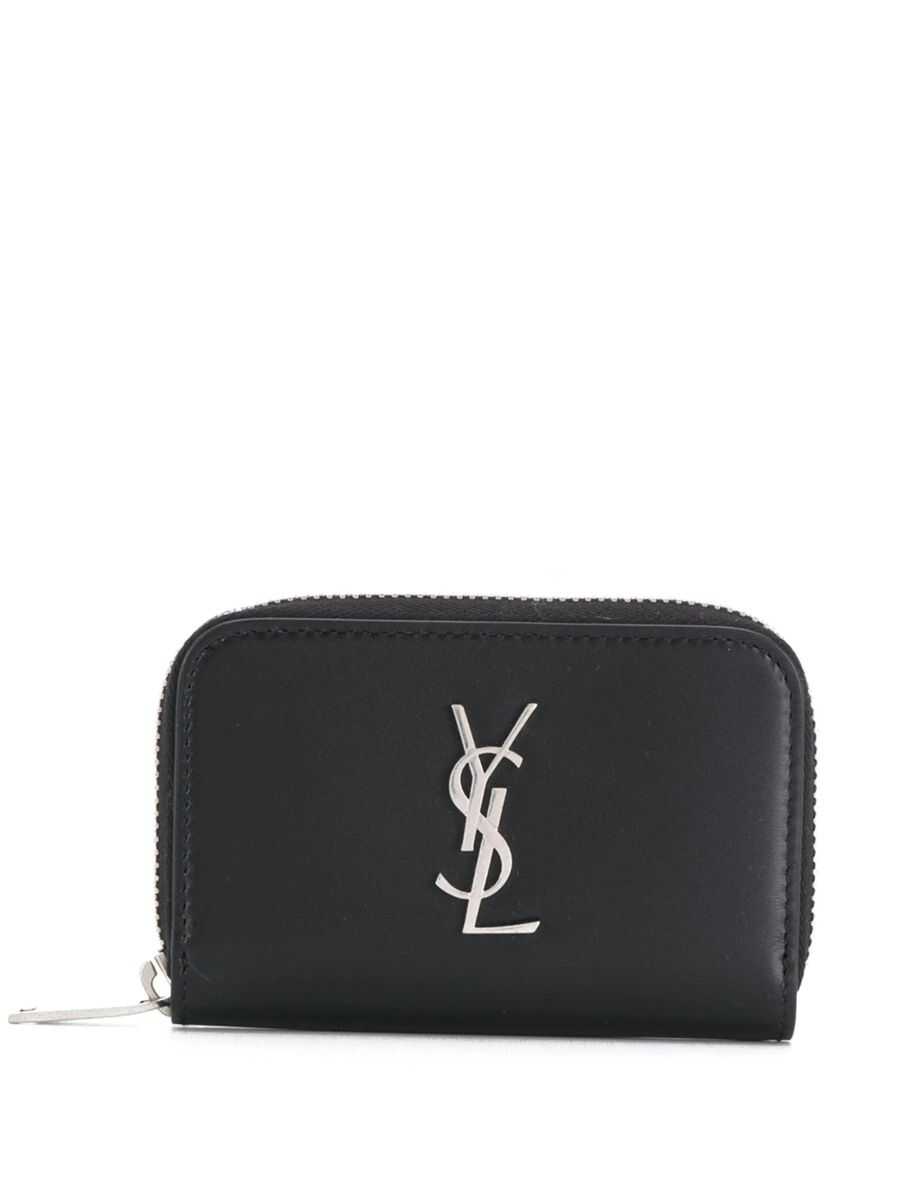 Simplicity can take you far. Crafted from charcoal black leather, this YSL logo zipped purse has a classic YSL logo plaque on the front. Less if more. Featuring silver-tone hardware, a logo plaque, an internal logo stamp, a top zip closure and three compartments divided by partitions.