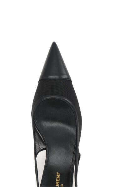 Saint Laurent's slingbacks crafted in black mesh with tone-on-tone nappa trims. Featuring adjustable ankle strap with metal buckle, a point-toe silhouette, leather / fabric lining and leather sole. The design is completed by a lacquered kitten heel.