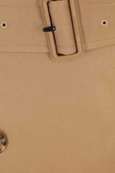 Burberry's A-line skirt crafted in beige organic cotton gabardine with removable belt. Featuring button / hooka-and-eye wrap closure, belt loops and side pockets. Unlined interior.