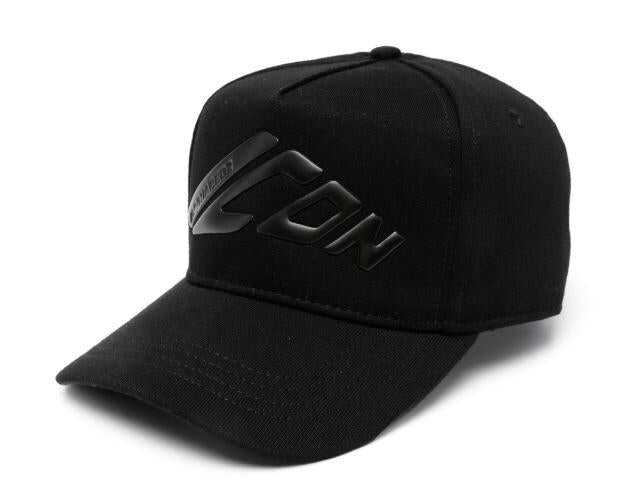 black cotton blend jersey texture debossed logo to the front six-panel construction eyelet vents embroidered slogan cut-out detailing adjustable strap to the rear curved peak