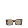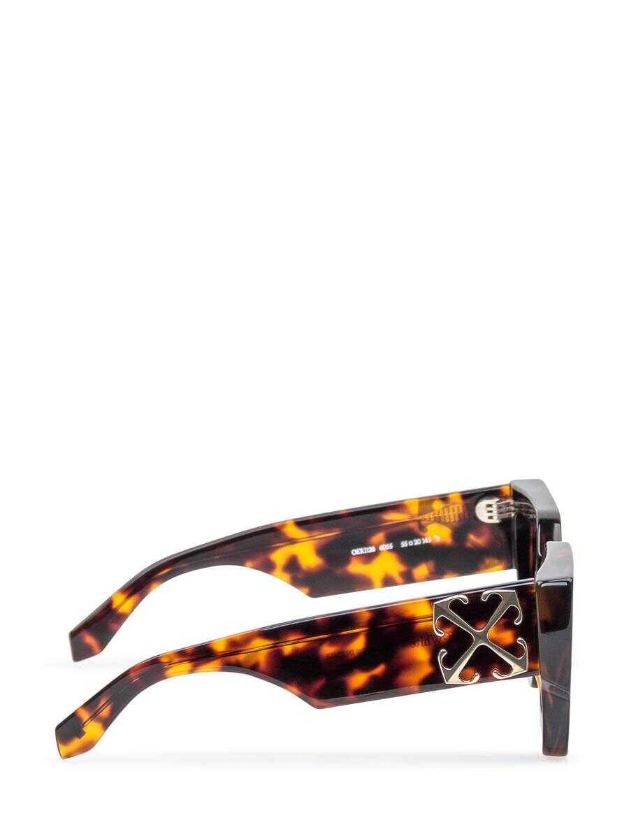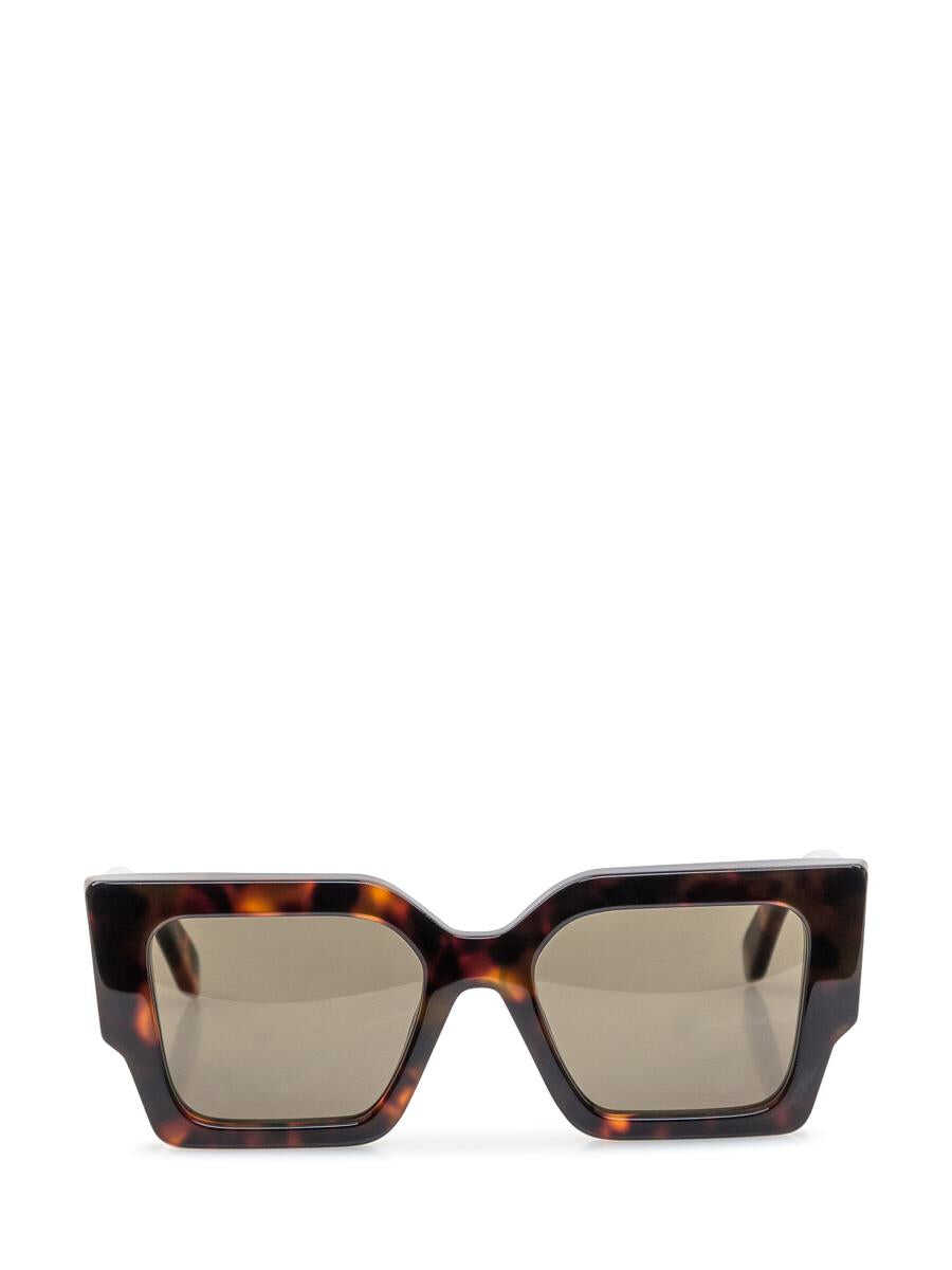 Havana-colored sunglasses. Extra thick square frame. Dark lenses. Maxi logo on the side.
