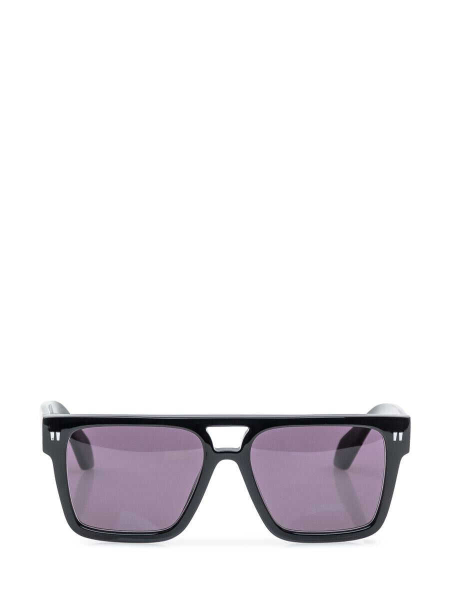 Black sunglasses. Square frame. Dark lenses. Side logo.