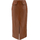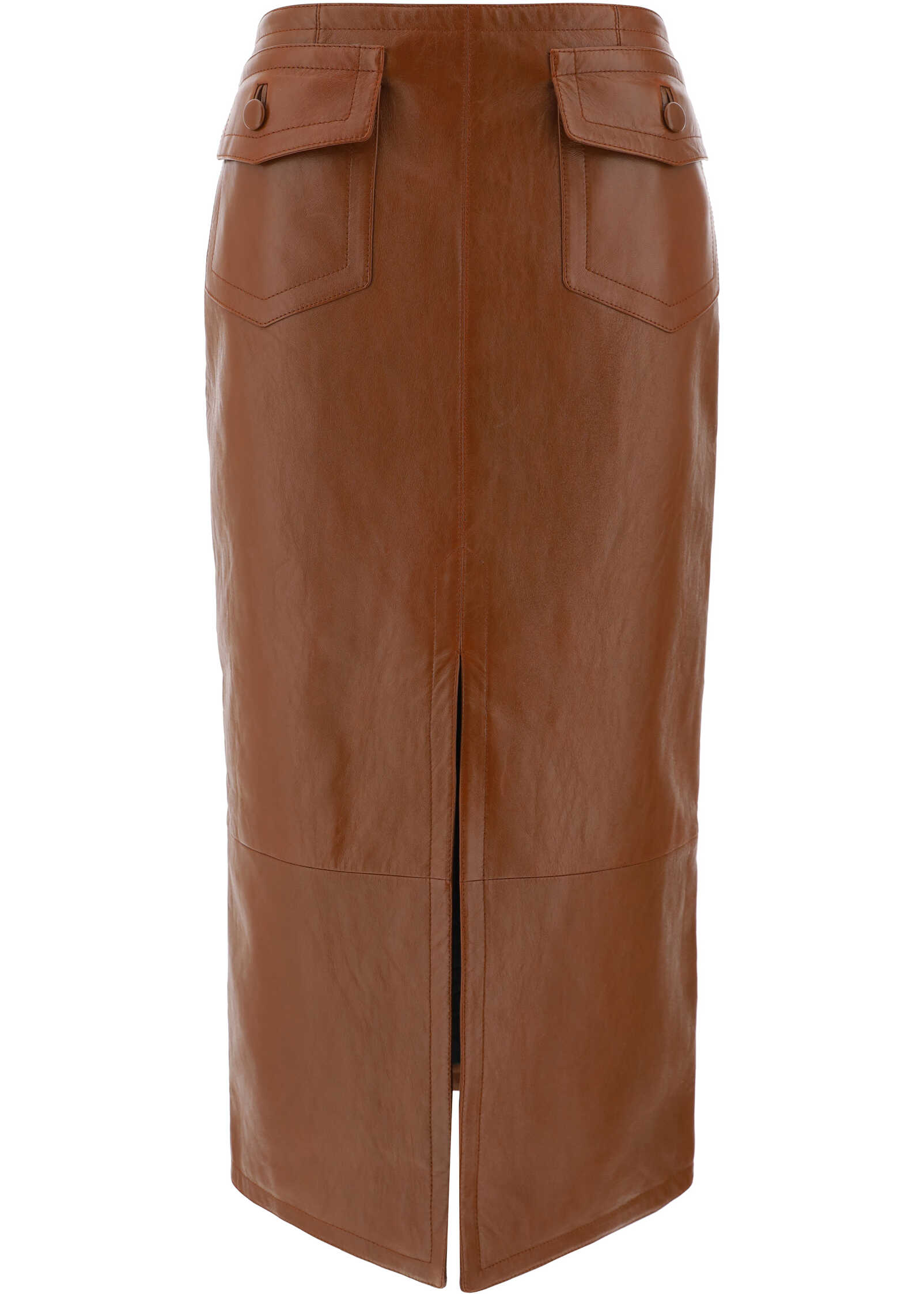 Leather Skirt by Chloé, back panel zipper closure, two flap welt pockets appliqué on front, deep front slit, paneled design, regular fit.