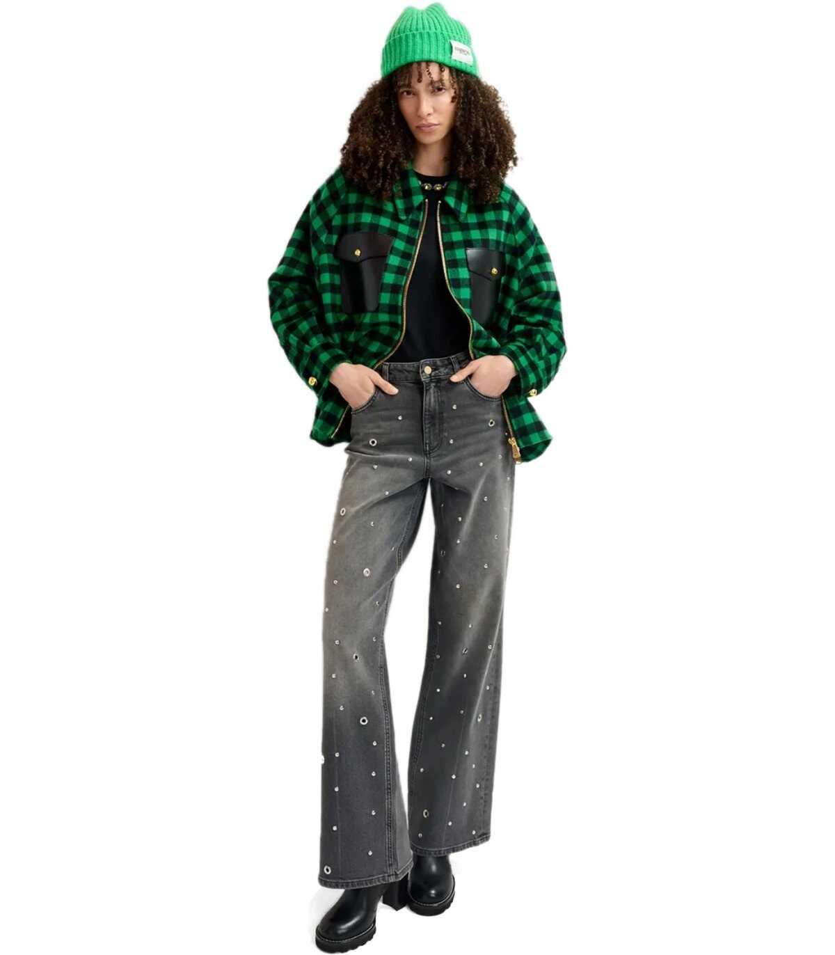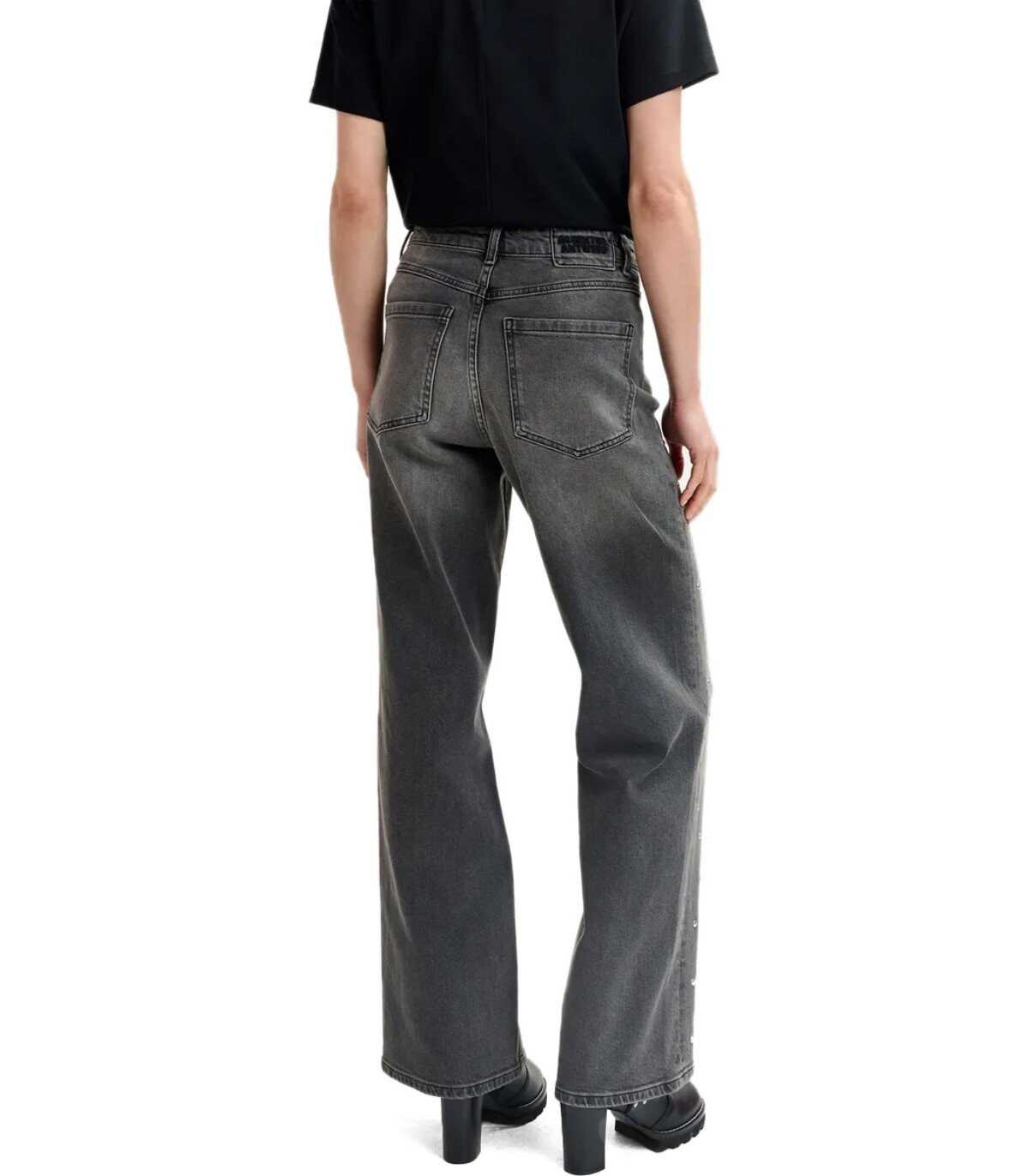 Essentiel Antwerp Garment jeans made of cotton denim with a touch of stretch, in gray color. Characterized by a zip and button closure, it features a straight leg. Equipped with a waistband with belt loops, it has five pockets. Adorned with silver studs and eyelets along the front. Relaxed fit.