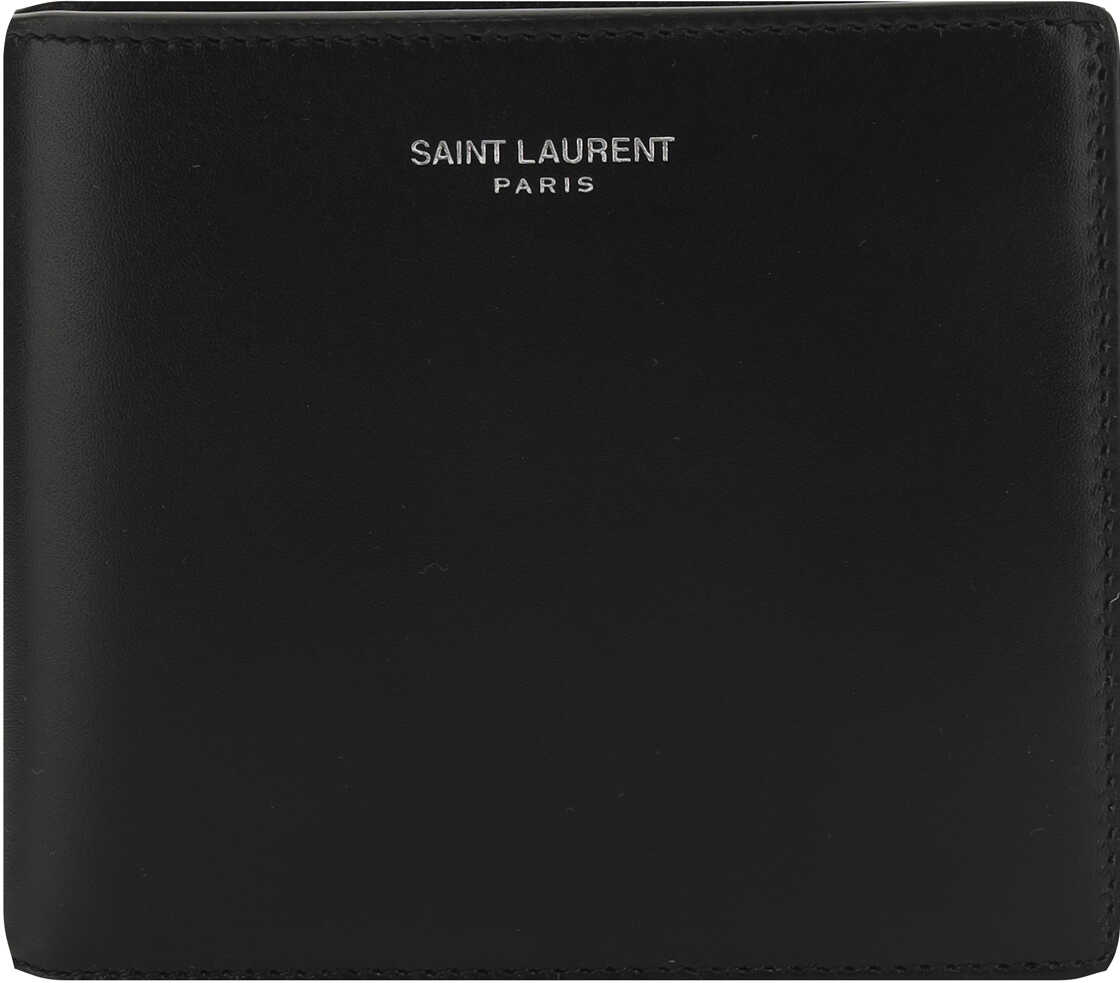 Calfskin Wallet by Saint Laurent, billfold design, card slots inside, bill compartment, iconic brand monogram printed in contrasting pressure on front.
