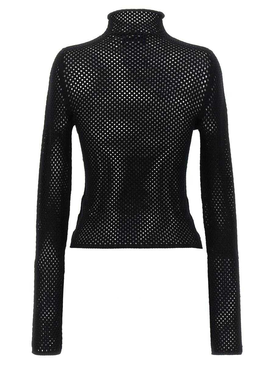 Openwork sweater in viscose blend with front jacquard logo, high neck, and long sleeves