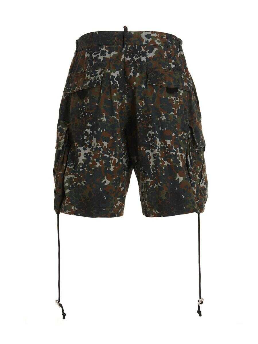 Goth Camo' cotton bermuda shorts with elastic waistband, zip and button closure, multi pockets and a drawstring that can be adjustable on the leg hem